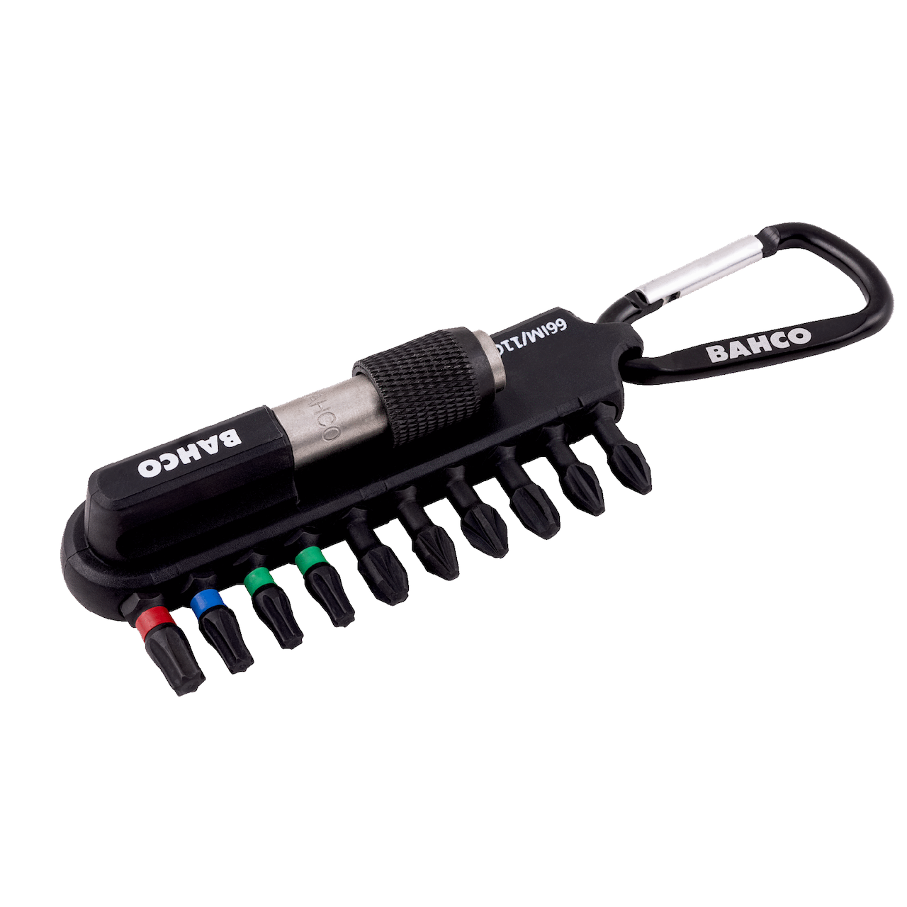 - Bits sett med 10 bits for Phillips, Pozidriv, og TORX® skruer
