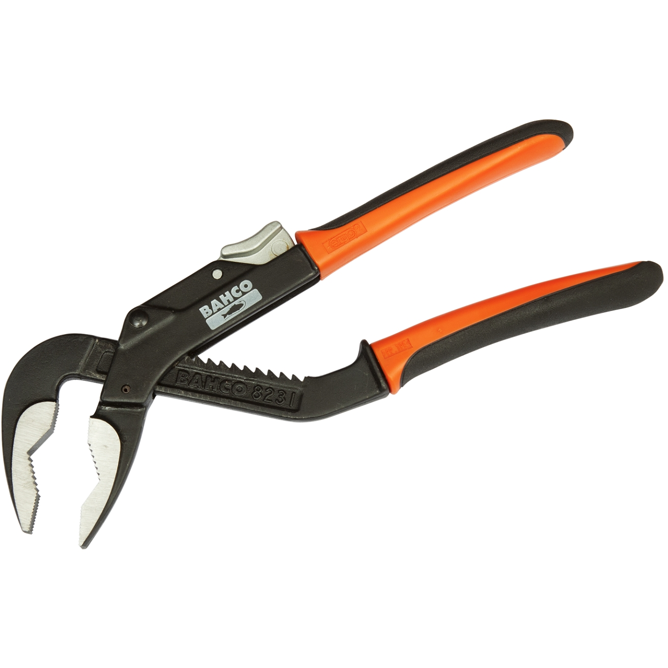 Vannpumpetang med to-komponents håndtak som gir godt grep. Enkel enhåndsgrep med tommelkapp for justering. Til både runde og flate grep.