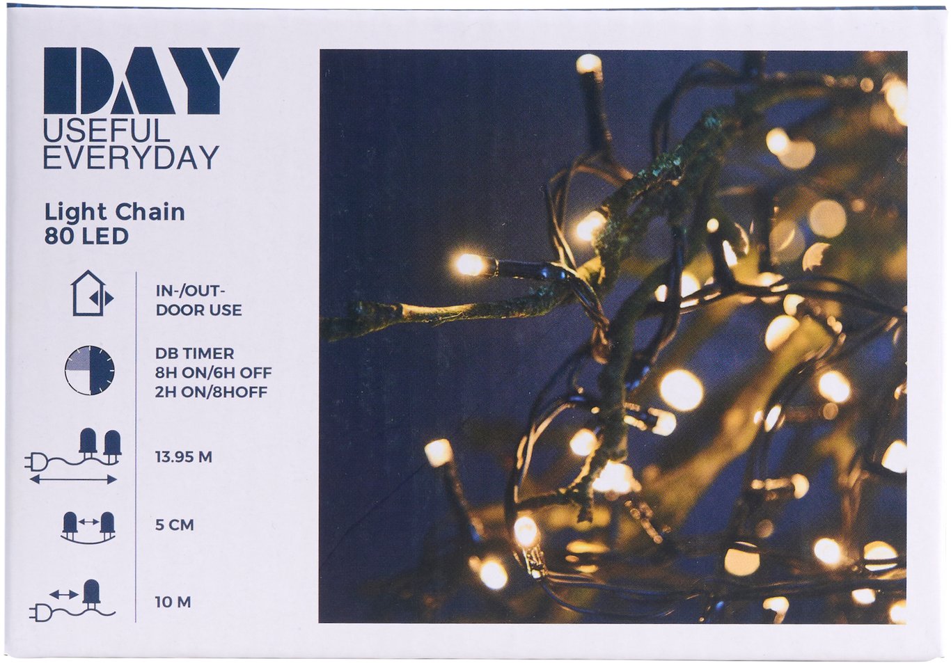 Denne lyslenken fra Day gir stemningsfull dekor, både innen- og utendørs. Den kobles til i stikkontakt, men har god lengde fra kontakten til første LED-lys.