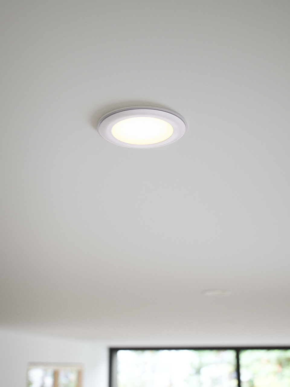 Denne innfelte LED-spotten fra Nordlux har integrerte lysdioder og tretrinns moodmaker-funksjon lar deg skifte mellom tre forskjellige lyssettinger med en vanlig bryter.