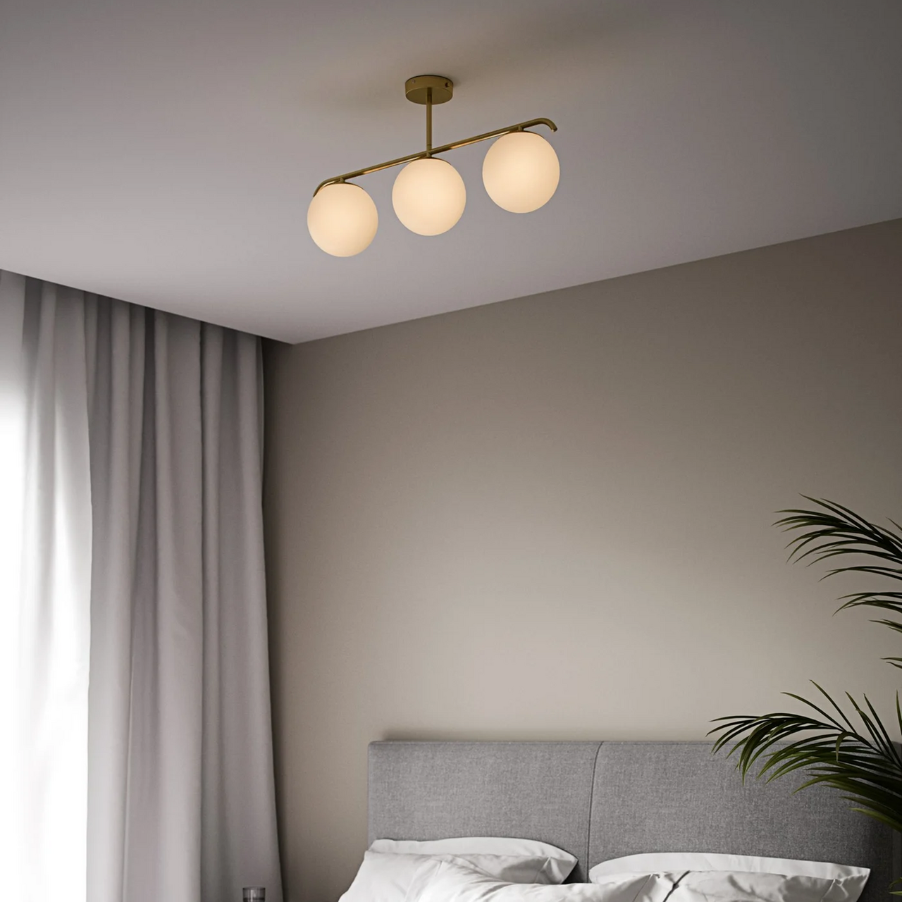 Denne lampen fra Nordlux har et minimalistisk design, og de tre kuplene gir en fin, generell rombelysning. Kontrasten mellom fint hvitt opalglass og messing gir lampen et mer luksuriøst utrykk.