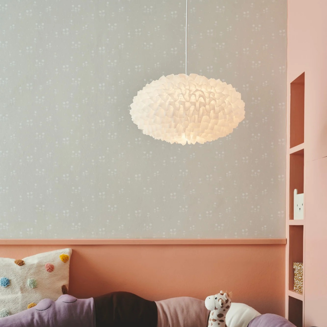 Denne lampeskjermen fra Nordlux har detaljer av chiffonvolanger, og passer perfekt på barnerommet. Den har et lett og luftig uttrykk, og kaster et mykt og diffust lys ut i rommet.