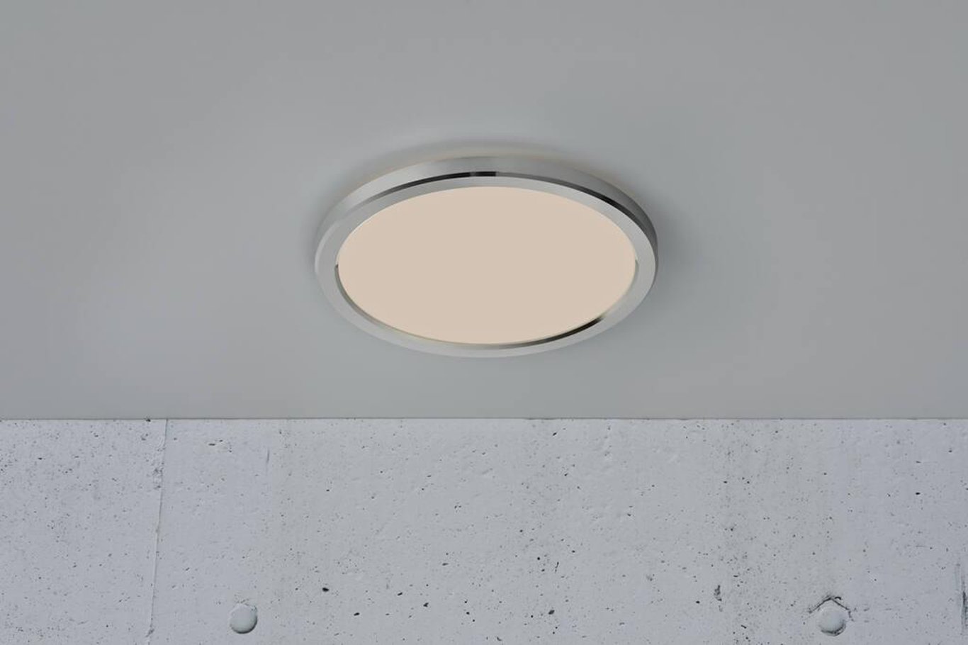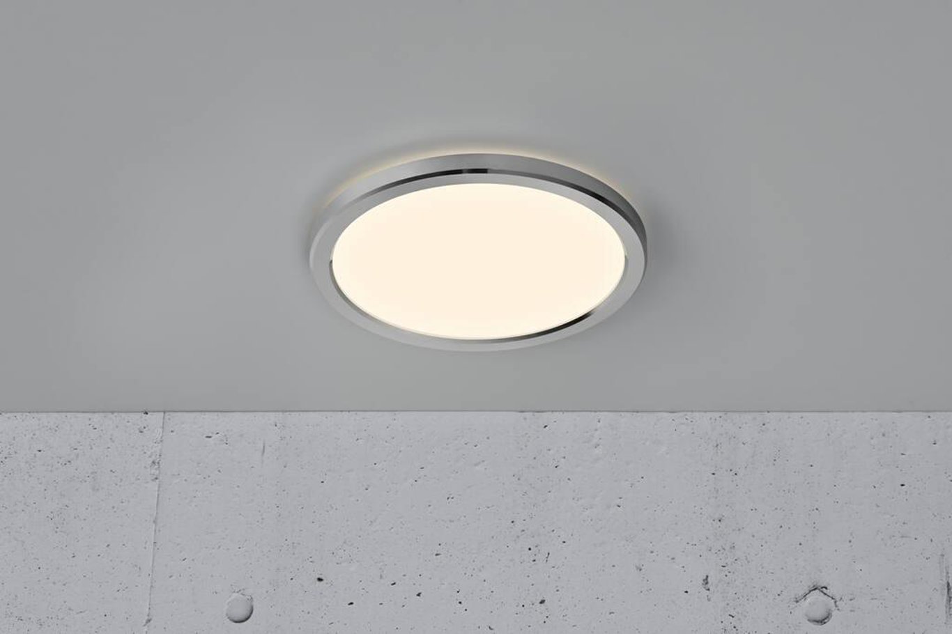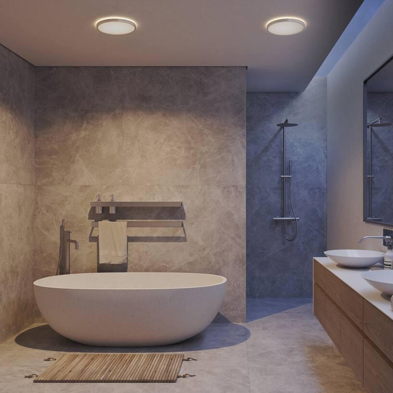 Denne runde taklampen fra Nordlux har et moderne og minimalistisk design, og tre lysinnstillinger å velge mellom. Taklampen har en høy beskyttelsesgrad, IP54, som gjør at den også er egnet for fuktige områder som bad og kjeller.