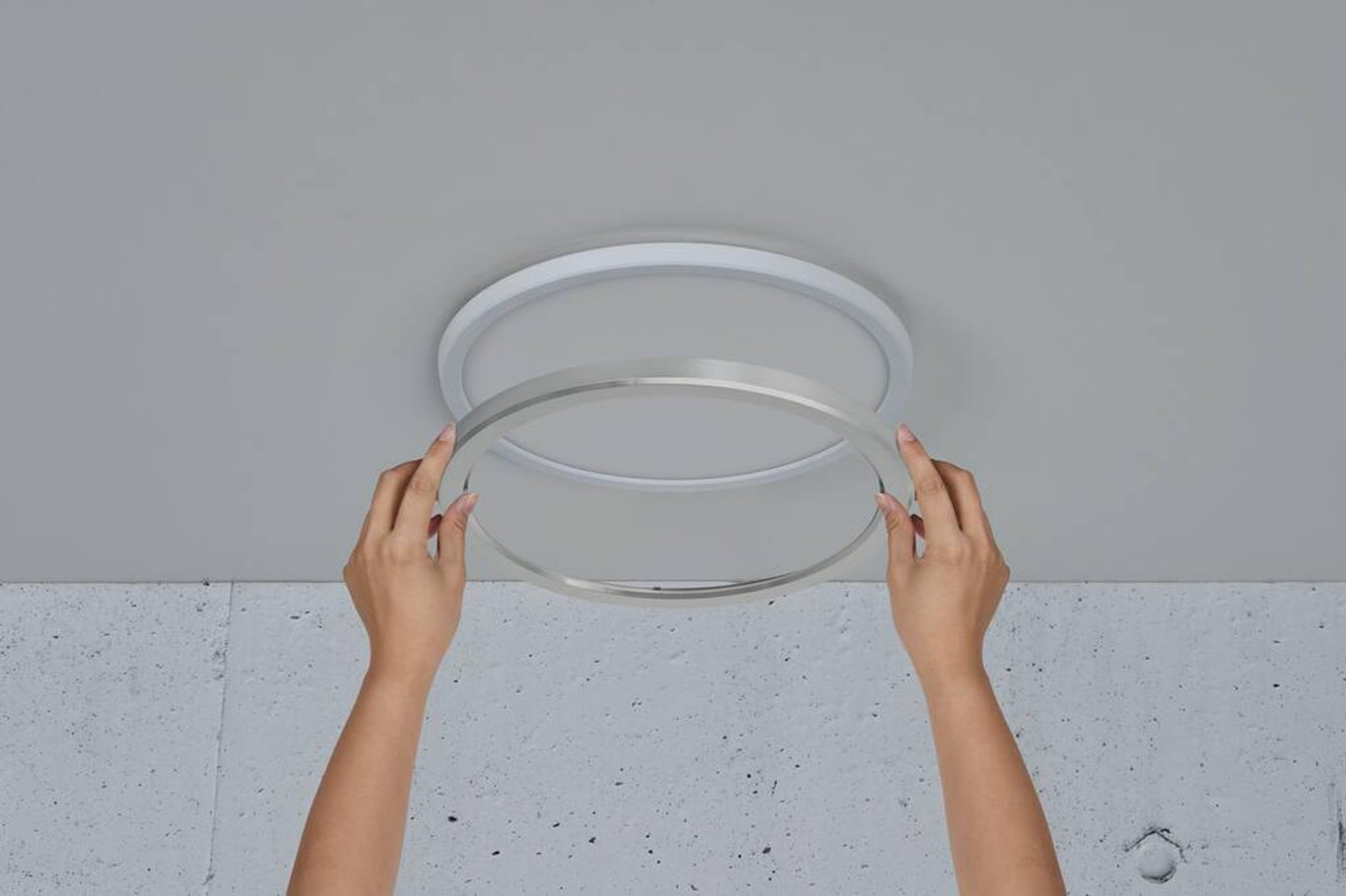På grunn av taklampens Moodmaker-funksjon kan du velge mellom tre lysinnstillinger via veggbryteren. I tillegg har lampen en minne- og tilbakestillingsfunksjon som gjør det enkelt å velge og lagre ønsket lysinnstilling. Lampen leveres med ring både i hvitt og krom, som gjør at du selv kan velge uttrykket på lampen.