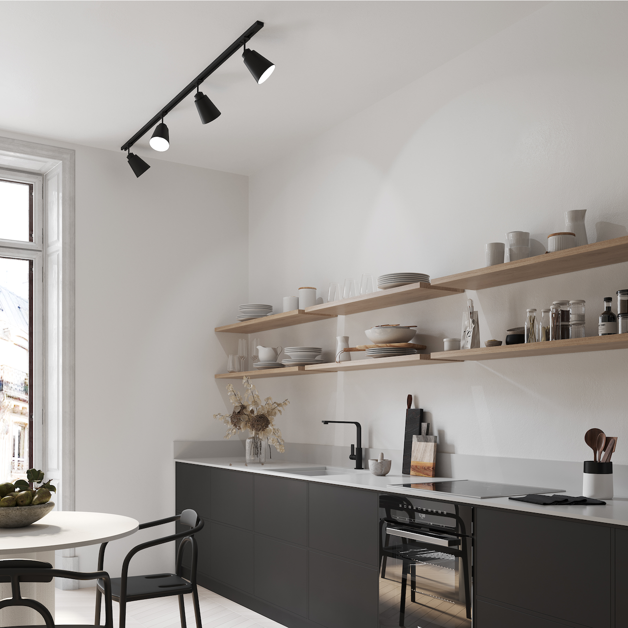 Den gir et behagelig, retningsbestemt lys som er perfekt i gangen eller over kjøkkenbenken der du trenger et funksjonelt og praktisk lys. Det følger med to utskiftbare skjermer – én i glass og én i metall alt etter hvilket designuttrykk du ønsker å skape.
