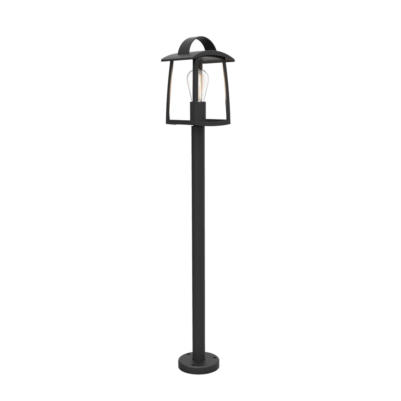 Denne lyktestolpen fra Lutec har et moderne design med et klassisk preg, med matt sort ramme og klart glass. Den passer godt inn i de fleste uterom.