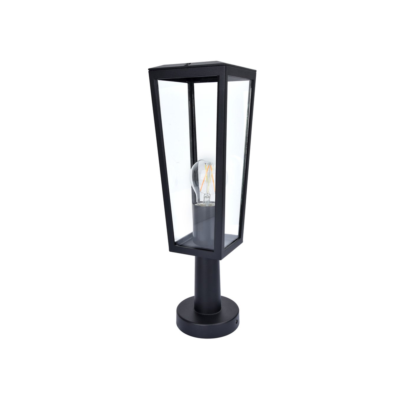 Denne portstolpen fra Lutec har et moderne design, med rette linjer og en matt sort overflate. Den passer godt inn i de fleste uterom.