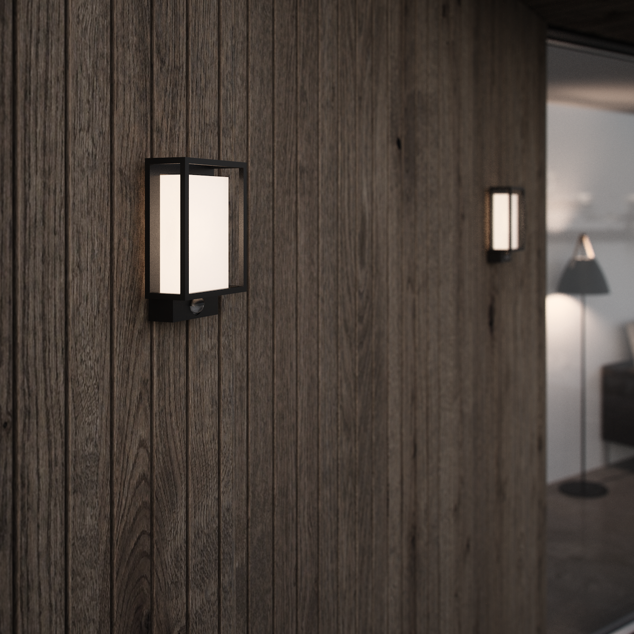 NORDLUX NESTOR VEGGLAMPE M/SENSOR, SORT