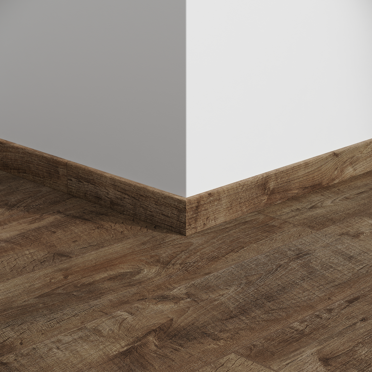Disse sokkellistene fra BerryAlloc passer til gulv i samme dekor, og gir rommet et helhetlig uttrykk. Listene installeres med lim eller clips.