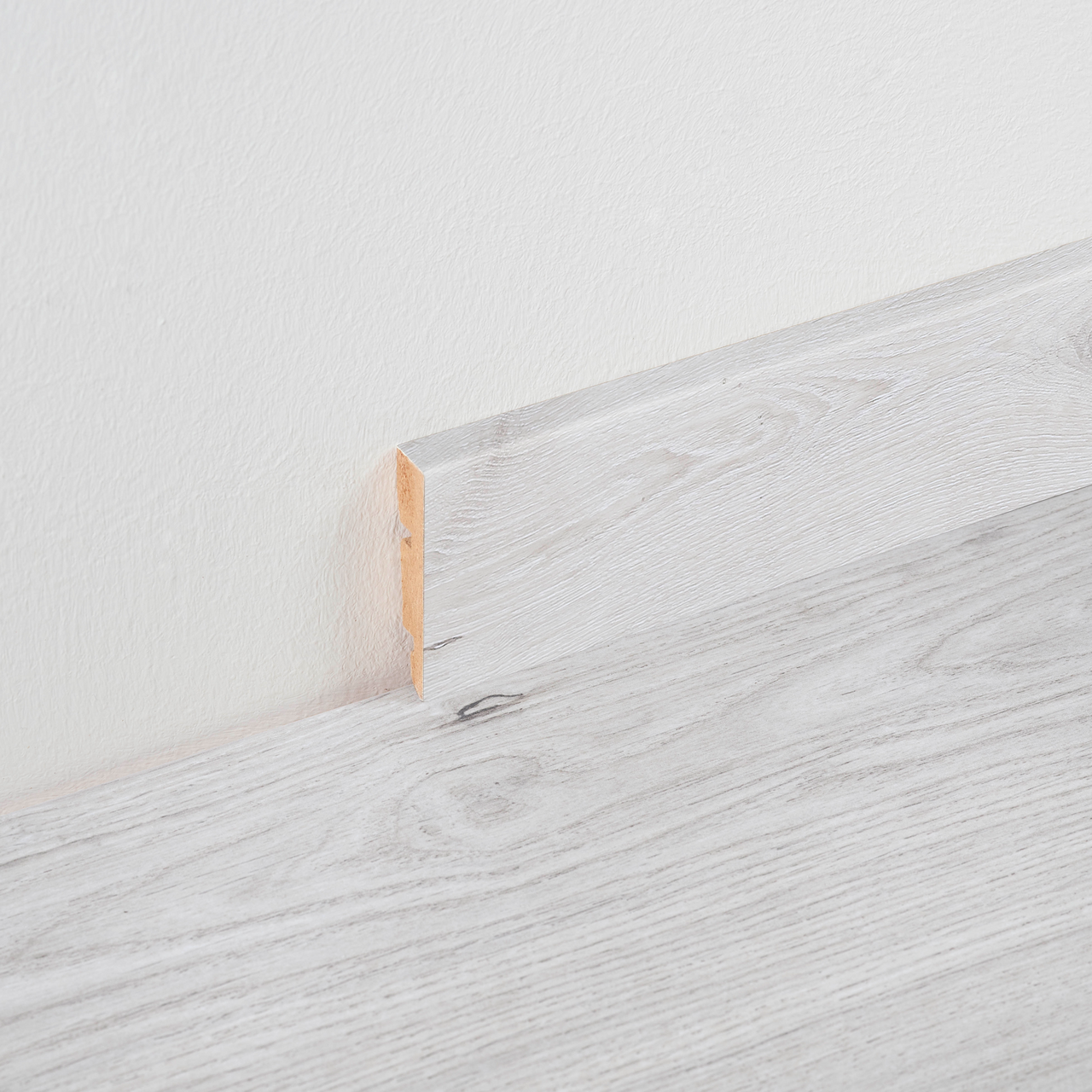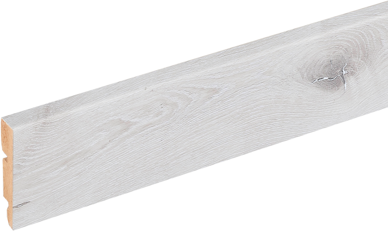 Disse sokkellistene fra BerryAlloc passer til gulv i samme dekor, og gir rommet et helhetlig uttrykk. Listene installeres med lim eller clips.