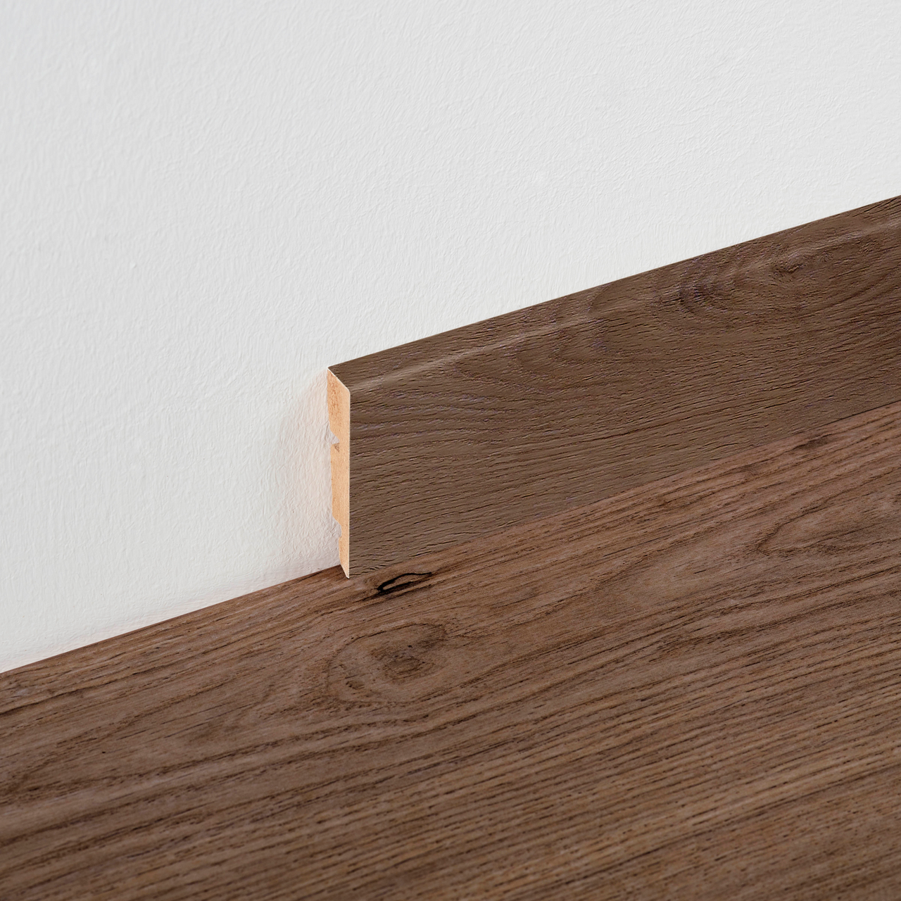 Disse sokkellistene fra BerryAlloc passer til gulv i samme dekor, og gir rommet et helhetlig uttrykk. Listene installeres med lim eller clips.