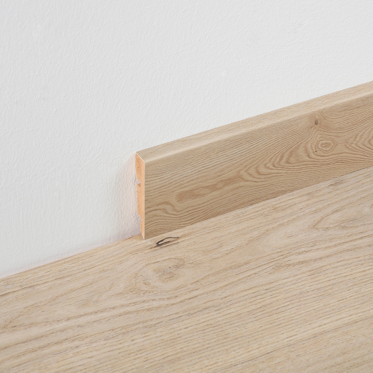 Disse sokkellistene fra BerryAlloc passer til gulv i samme dekor, og gir rommet et helhetlig uttrykk. Listene installeres med lim eller clips.