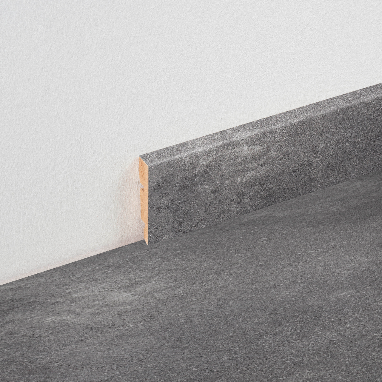 Disse sokkellistene fra BerryAlloc passer til gulv i samme dekor, og gir rommet et helhetlig uttrykk. Listene installeres med lim eller clips.