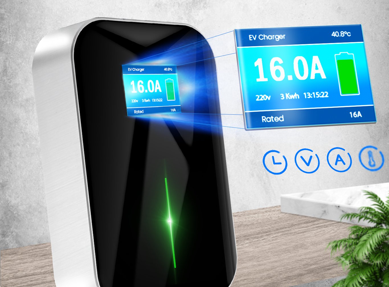 Leveres med avansert display med sanntids energimåling, ladestatus og feildiagnostikk som melder om feilårsak.