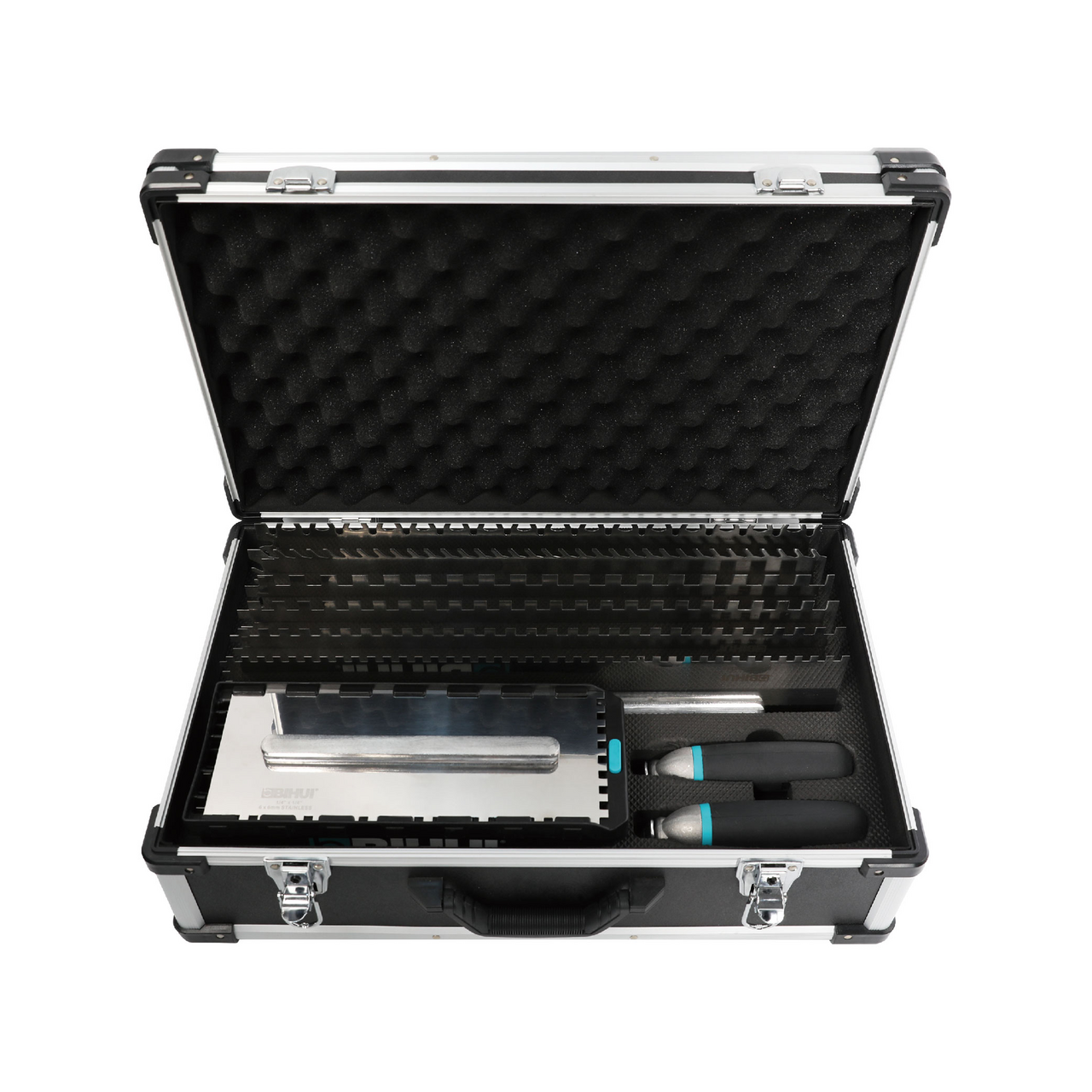 Komplett sett med to ergonomiske håndtak og utskiftbare tannbrett, oppbevart i en solid koffert for enkel tilgang.