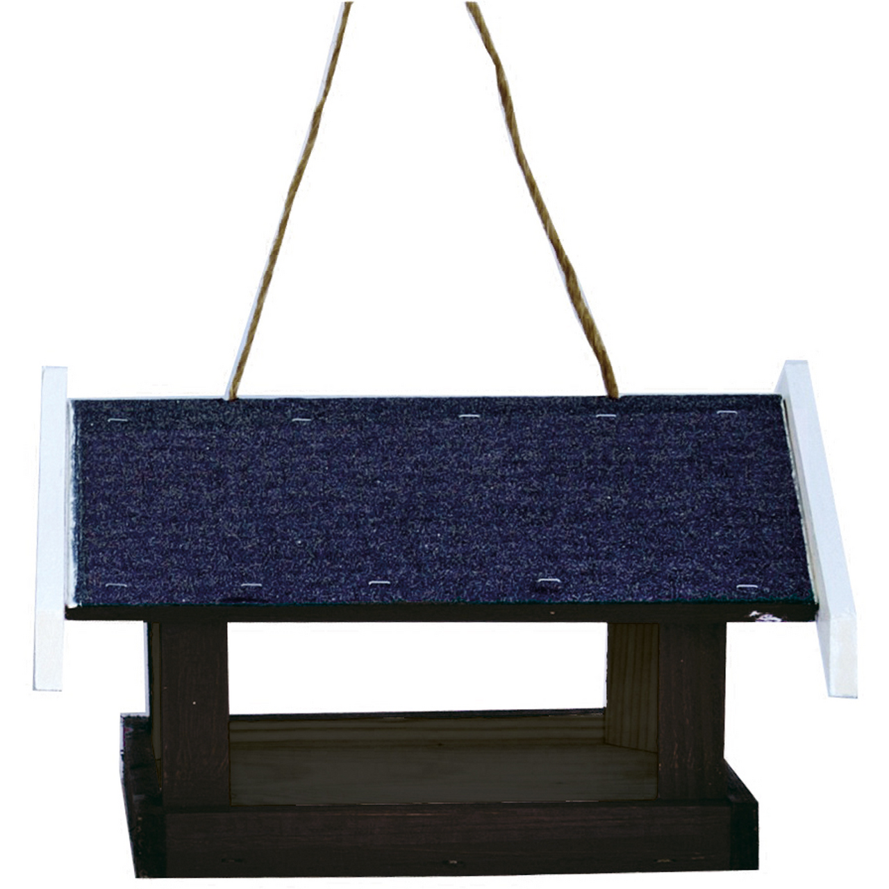 Taket beskytter fôret mot regn og snø, mens den åpne konstruksjonen gjør det enkelt for fuglene å komme til. Huset kan henges opp i trær eller busker med opphengssnoren.