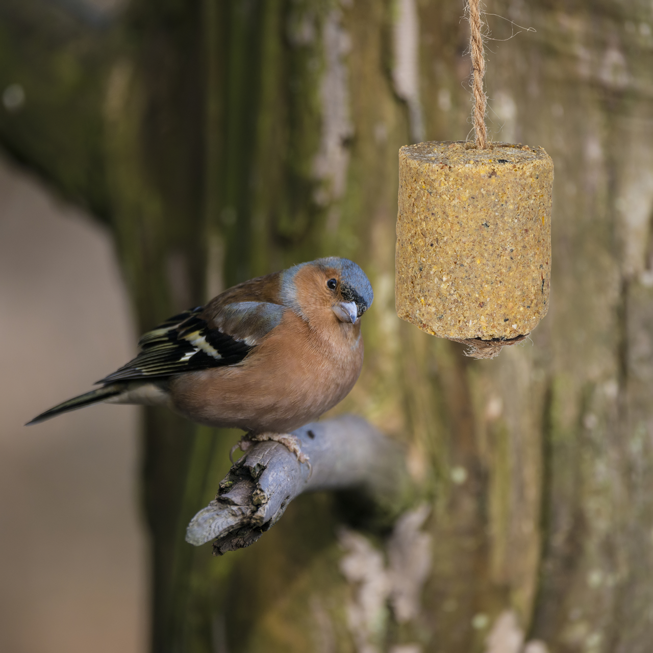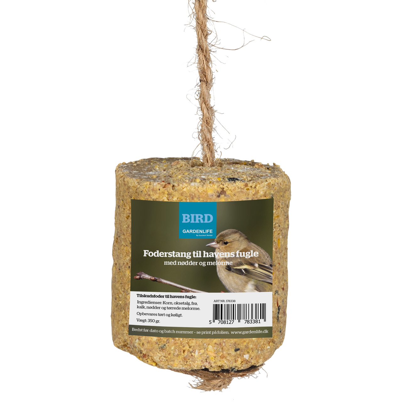Kompakt og næringsrik fôrblokk fra Bird laget av nøtter, korn, fett og tørkede melormer.