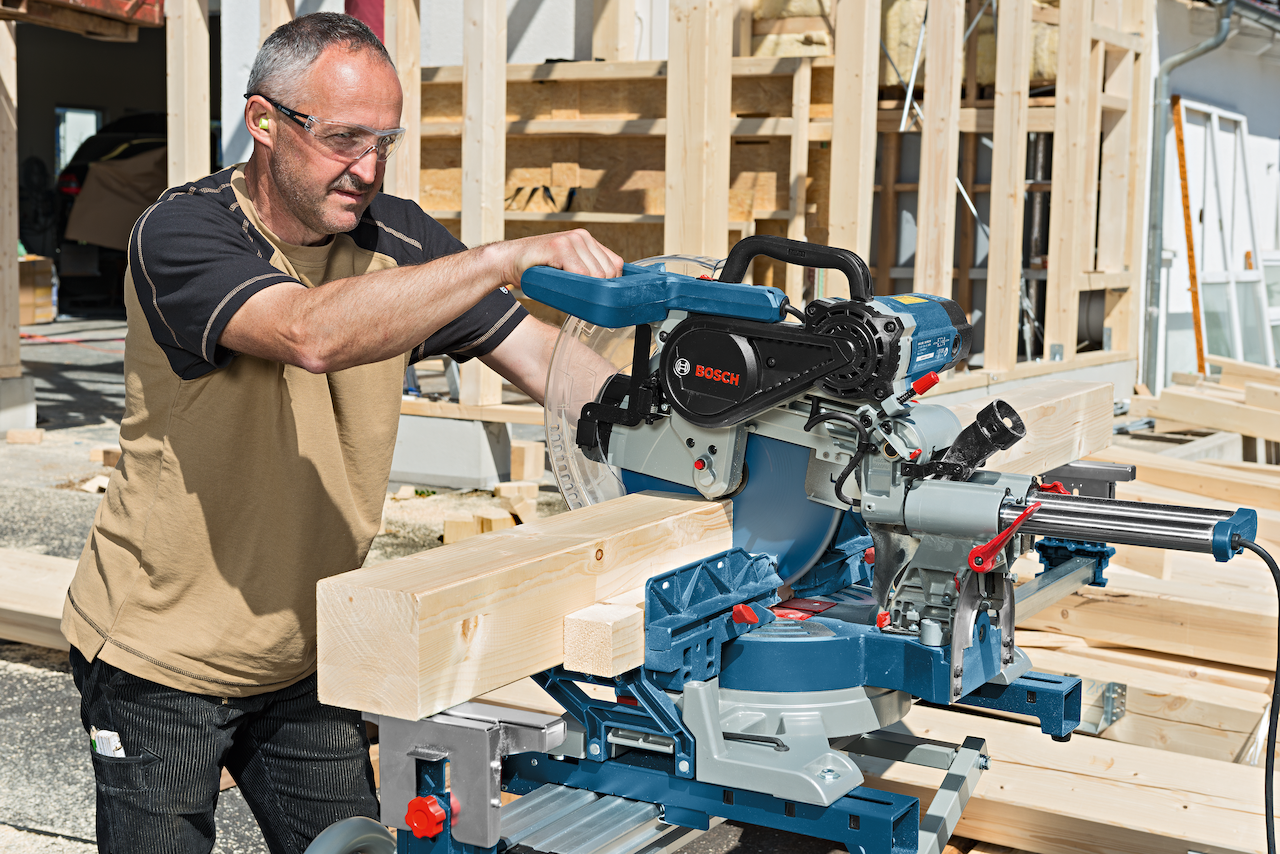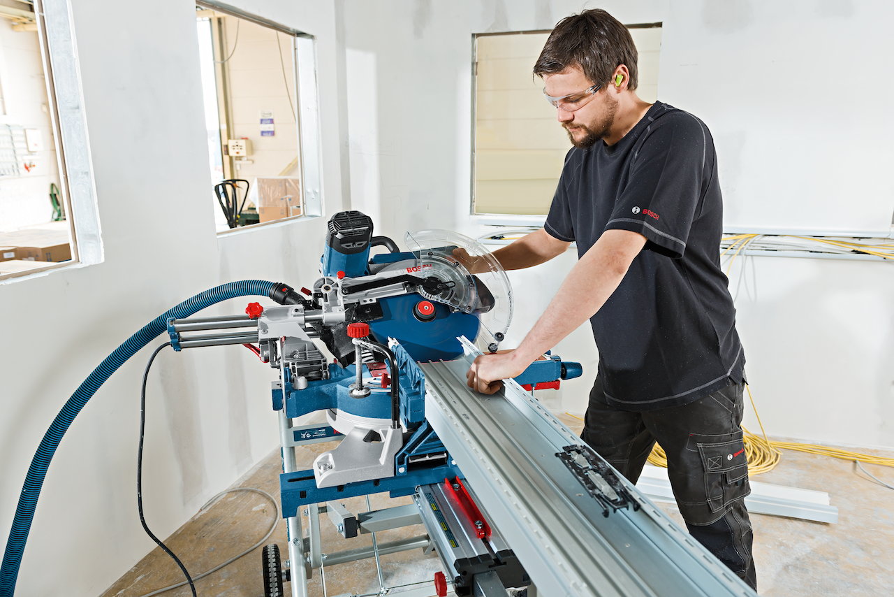 Bosch GCM 12 SDE Professional er en kapp- og gjærsag på 1800W med kappebredde opptil 400 mm og kappehøyde opptil 120 mm. Utstyrt med variabelt turtall, skråkappingsvinkel i begge retninger opptil 47°, støvutsugingskanal og lasermarkør som tydelig markerer sagsnittet.
