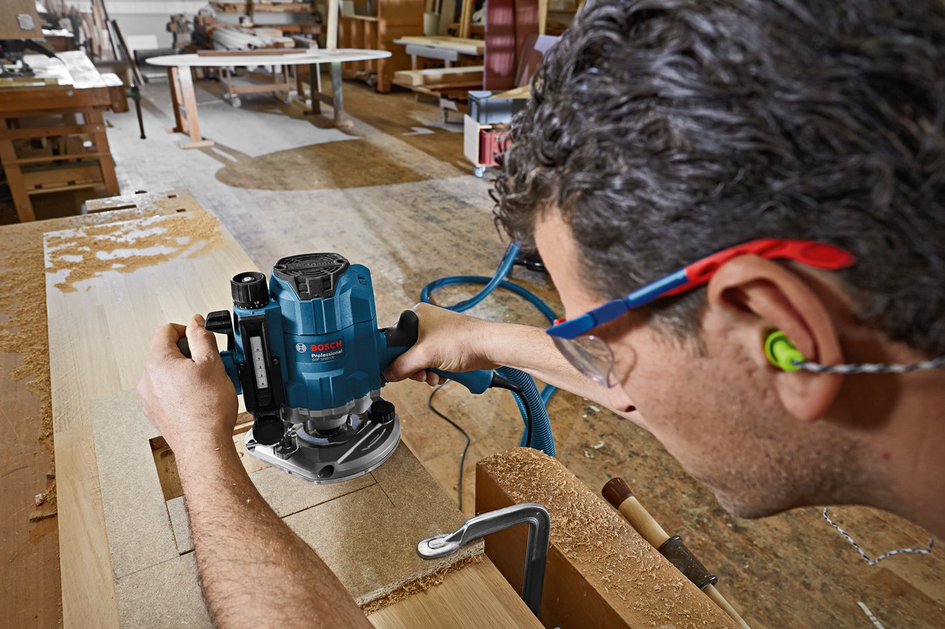Overfreseren er beregnet for fresing i tre og plast, og passer forskjellige styreskinner fra Bosch og til Bosch Click & Clean støvavsugssystem.