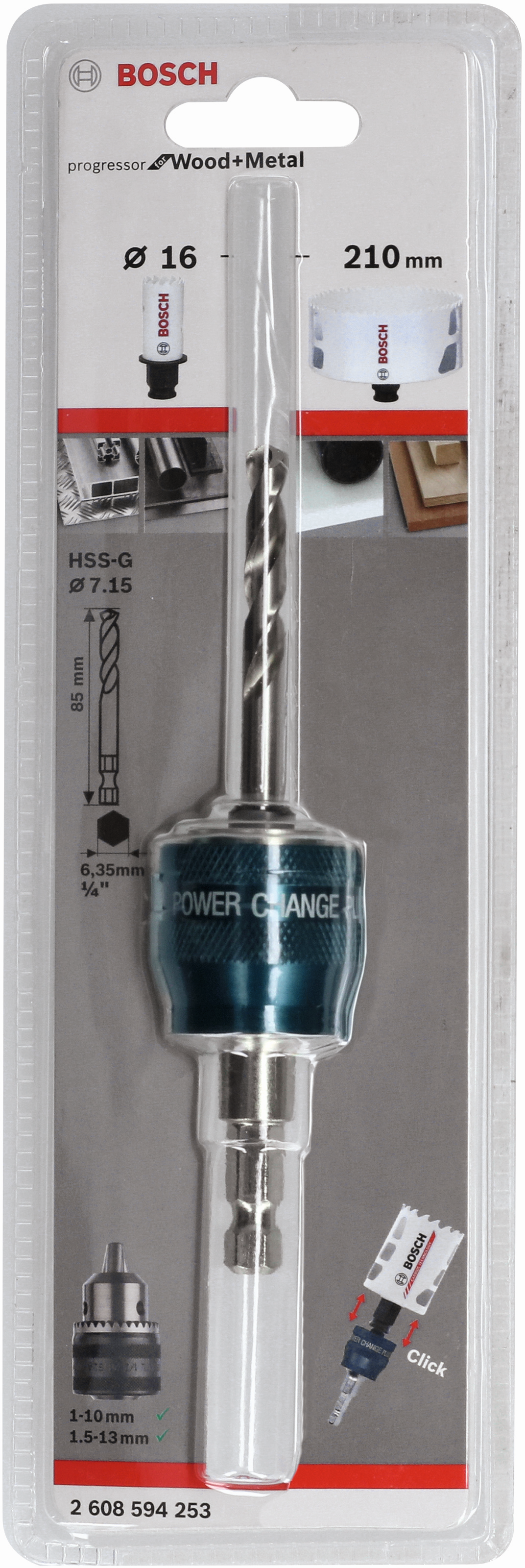 BOSCH ADAPTER POWER CHANGE+ 3/8" 8,7MM M/SENTERBOR HSS-G Ø7,15X85MM SEKSKANTET