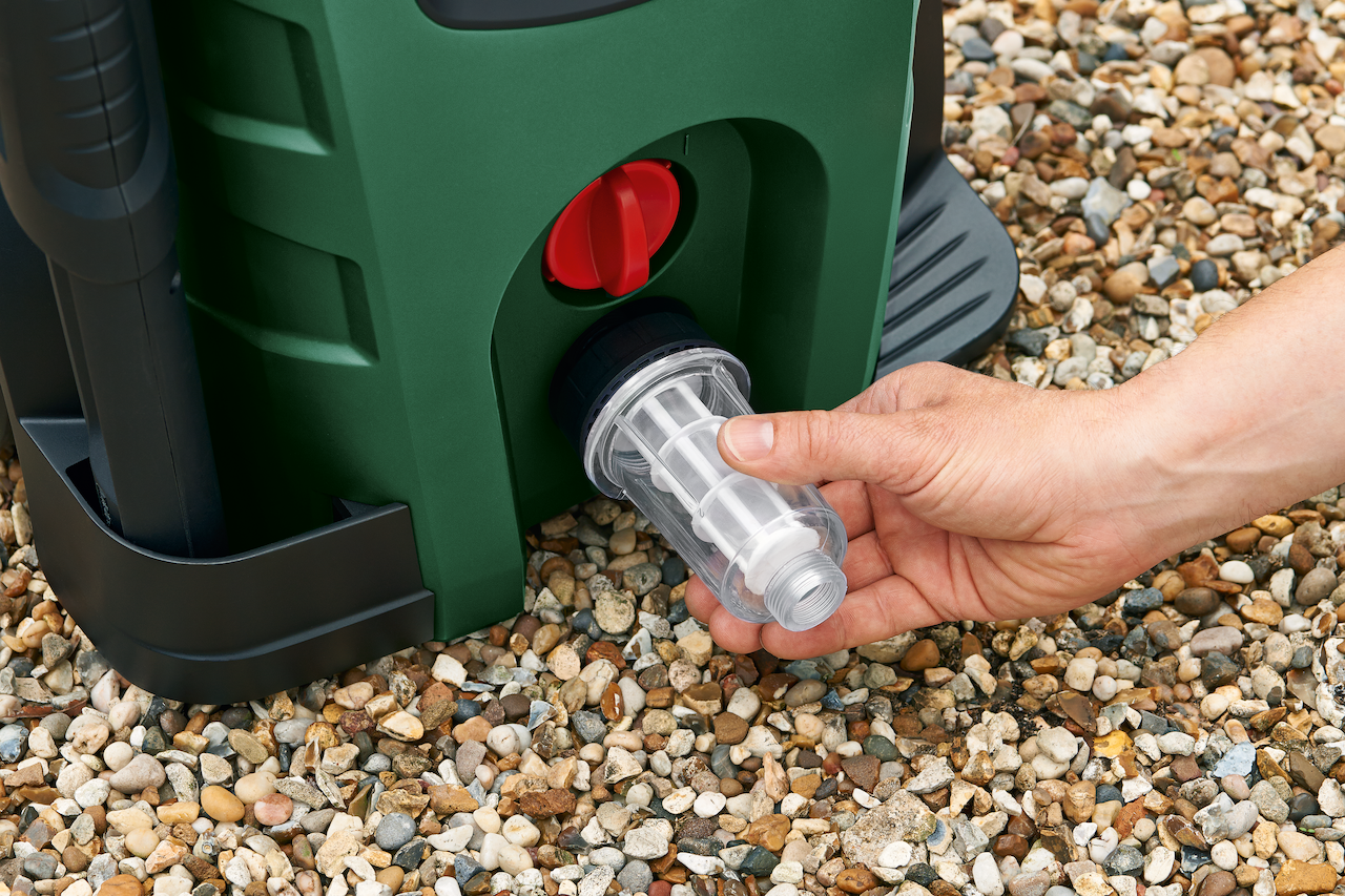 Filter med stor kapasitet for økt beskyttelse på steder med dårlig vannkvalitet til Bosch aquatak høytrykkspyler.