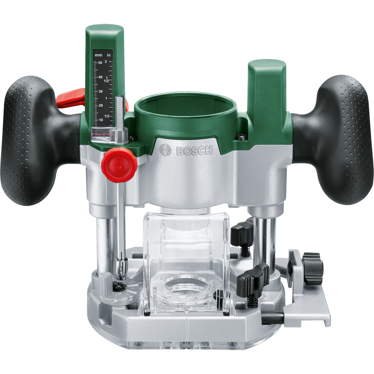 Overfresen gjør det enkelt å konvertere en trimmer til en dykkfres. Den er kompatibel med parallellfører og Bosch styreskinne for presis og rett spor-fresing.