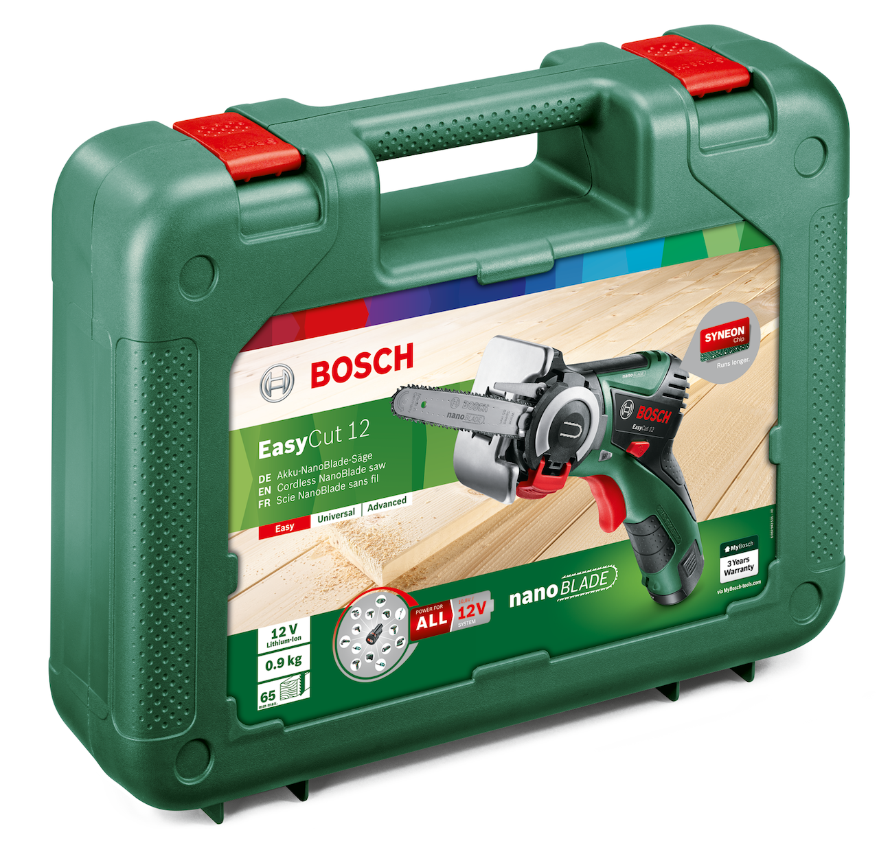 Sentrale produktegenskaper: Ny design som gjør det mulig å sage tett inntil kanter, for eksempel sage greiner helt inntil stammen Enkelt, trygt og raskt å skifte sagblad: Åpne dekselet, bytt sagblad og lukk dekselet Den nye sageteknologien er helt vedlikeholdsfri, og krever ingen smøring eller sliping av sagbladet Litium-ion-batteriet sikrer at sagen alltid er klar til bruk – overalt. Batteriet kan tas ut og brukes i andre verktøy i Power for ALL-systemet Bosch Electronic for full kontroll når boringen starter En festestropp kan brukes til å henge verktøyet på en grein eller stige under arbeidet