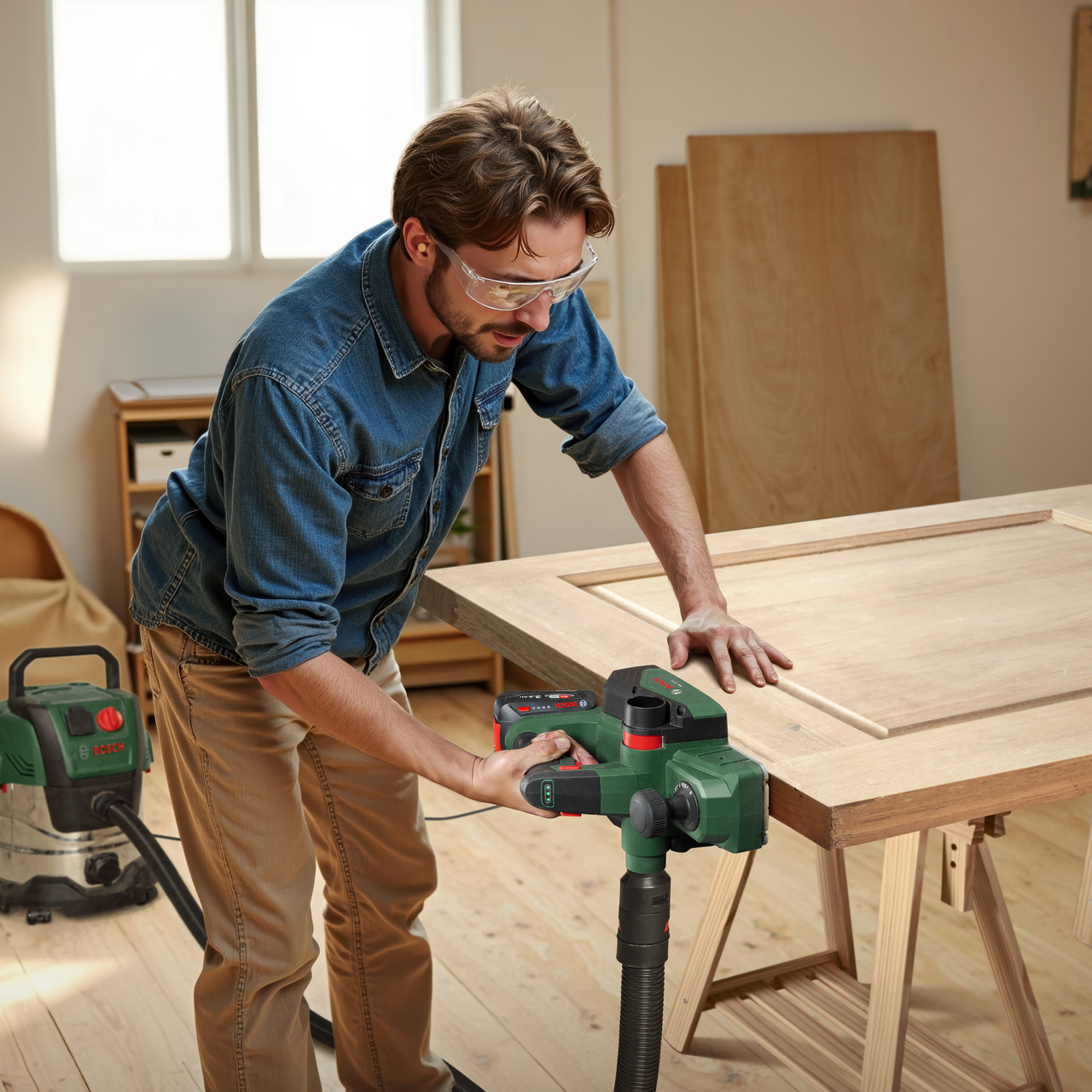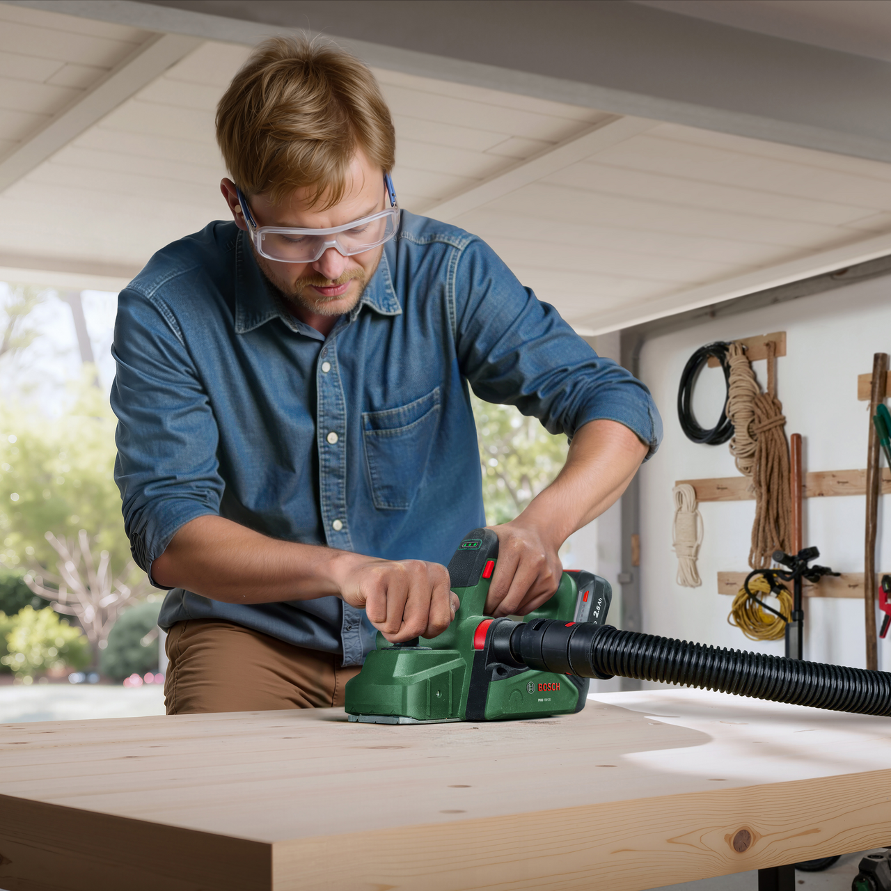 Høvelmaskinen er utformet for enkel tre- og plankehøvling av høy kvalitet. Den egner seg godt til etterbehandling av overflater, avfasing av kanter eller håndtering av lette byggeprosjekter.