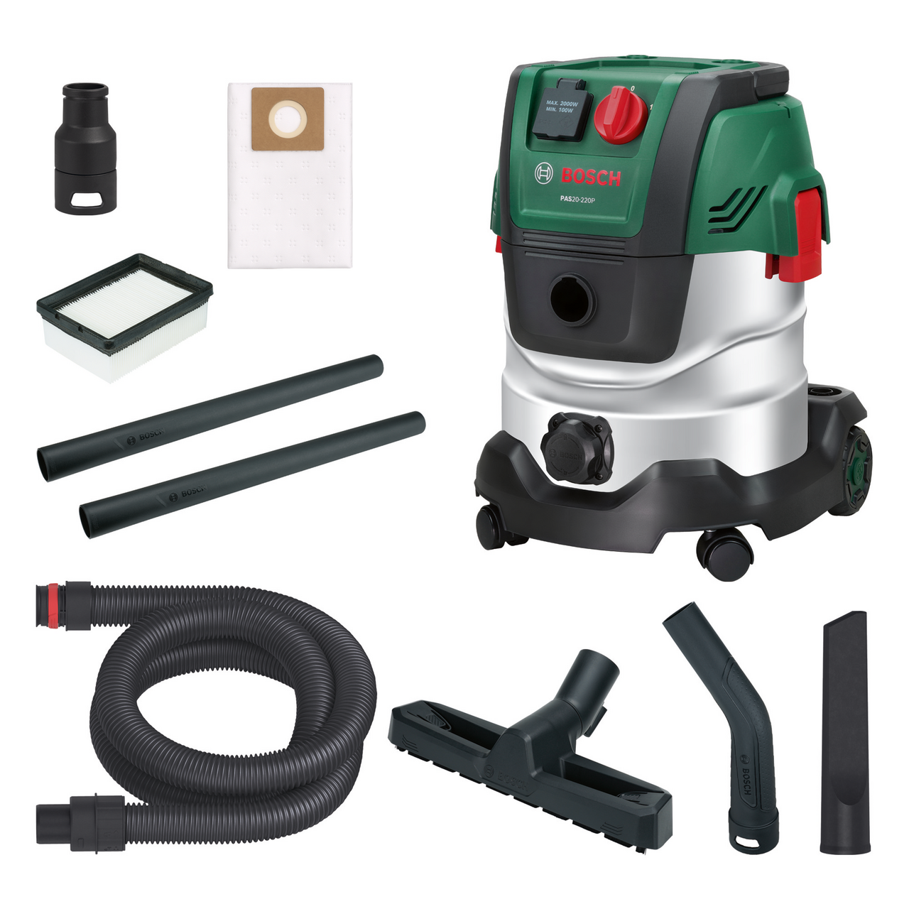 Støvsugeren er utstyrt med et flatt plissert filter som gjør det mulig å støvsuge både væsker og tørt støv uten å bytte filter. Med UniversalAdapter kan støvsugeren kobles direkte til Bosch gjør-det-selv elektroverktøy, og den automatiske startfunksjonen gjør at støvsugeren starter samtidig som verktøyet brukes.