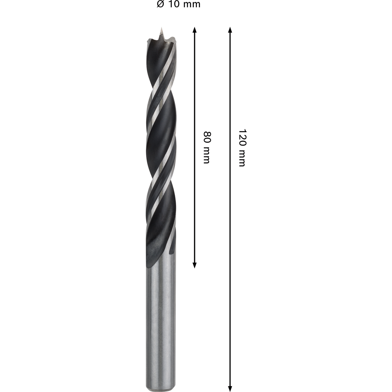 Diameter: 10 mmArbeidslengde: 80 mmTotal lengde: 120 mmTangdiameter: 10 mmFestetype: Sylindrisk skaftBruksområde: TreverkLeverandørens varenummer2608577713