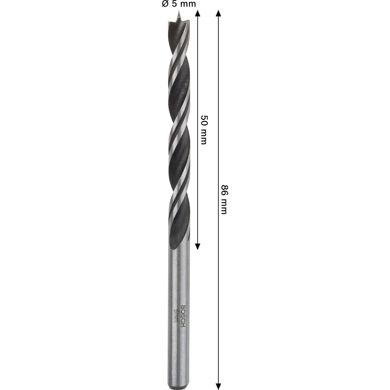 Diameter: 5 mmArbeidslengde: 50 mmTotal lengde: 86 mmTangdiameter: 5 mmFestetype: Sylindrisk skaftBruksområde: TreverkLeverandørens varenummer2608577708
