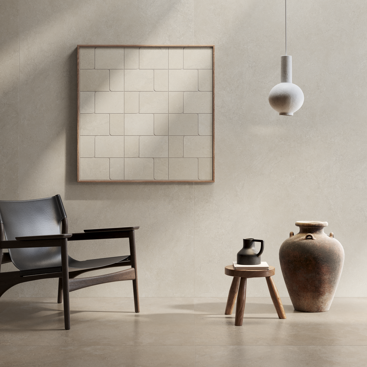 Den matte overflaten gir et eksklusivt og behagelig uttrykk samtidig som den demper refleksjoner. Flisen egner seg godt for bruk både på vegg og gulv.