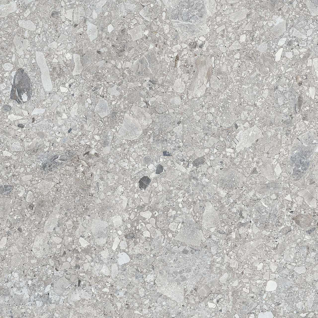 Denne porcellanatoflisen fra italienske Casalgrande Padana egner seg godt til bruk på terrasser eller i hager. Flisene har en grå, sklisikker overflate med terrazzo-imitasjon.