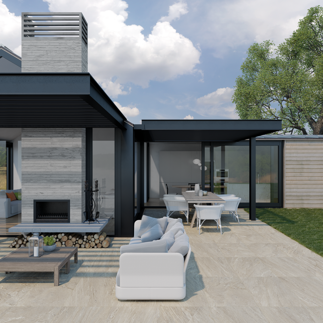 Den 2 cm tykke flishellen har en eksklusiv overflate både i utseende og slitestyrke, og vil skape et stilrent og moderne uttrykk. Den er gjennomfarget, har en porcellanato-kjerne, og er egnet til bruk både innen- og utendørs. Den kan også brukes som løse tråkkheller, eller på plenen.