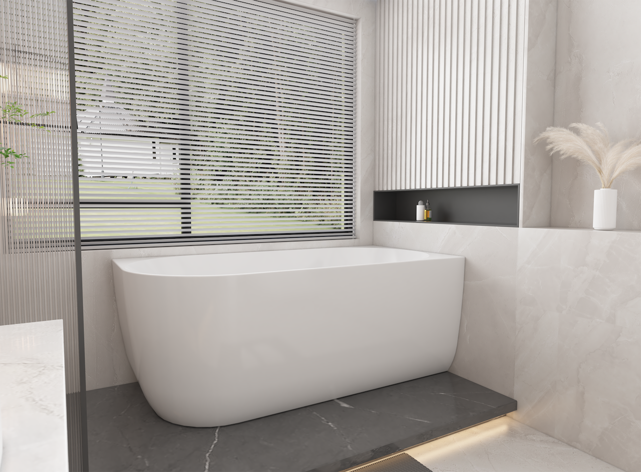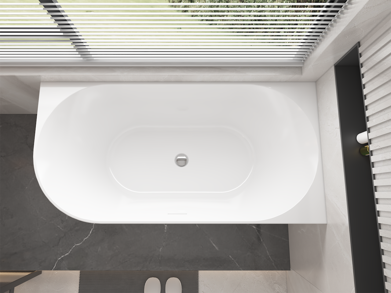 Celeste Caserta er et moderne badekar som passer godt inn i de fleste baderom. Det monteres med kortsiden mot høyre side av hjørnet.