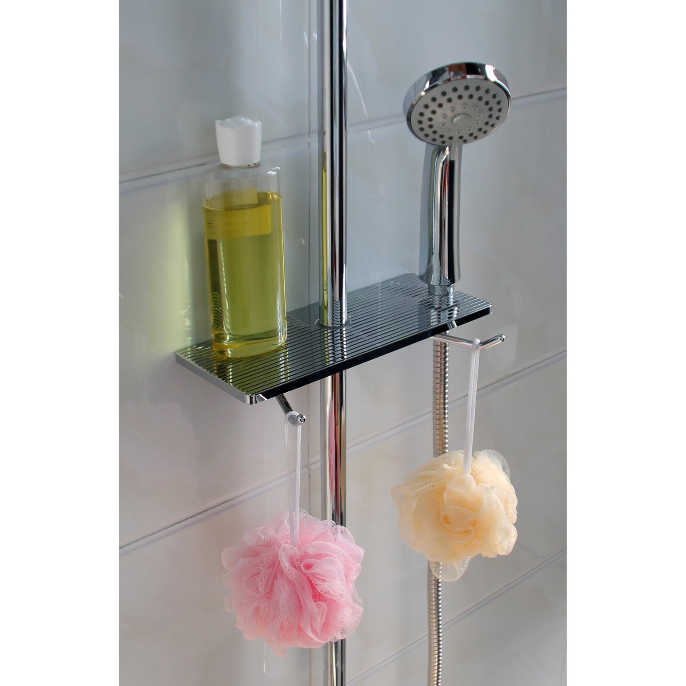 Denne dusjhyllen fra Celeste gir praktisk oppbevaring sammen med dusjstangen. Den har holder til hånddusjen, samt to kroker for oppheng.