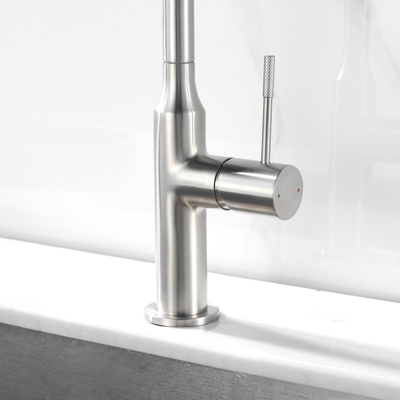 Celeste Ely kjøkkenarmatur har et stilrent design med buede linjer, og en utførelse i børstet stål. Den C-formede tuten og 360° svingradius gir god utnyttelse av kjøkkenservanten, og gjør det enkelt å vaske blant annet store panner og kar.
