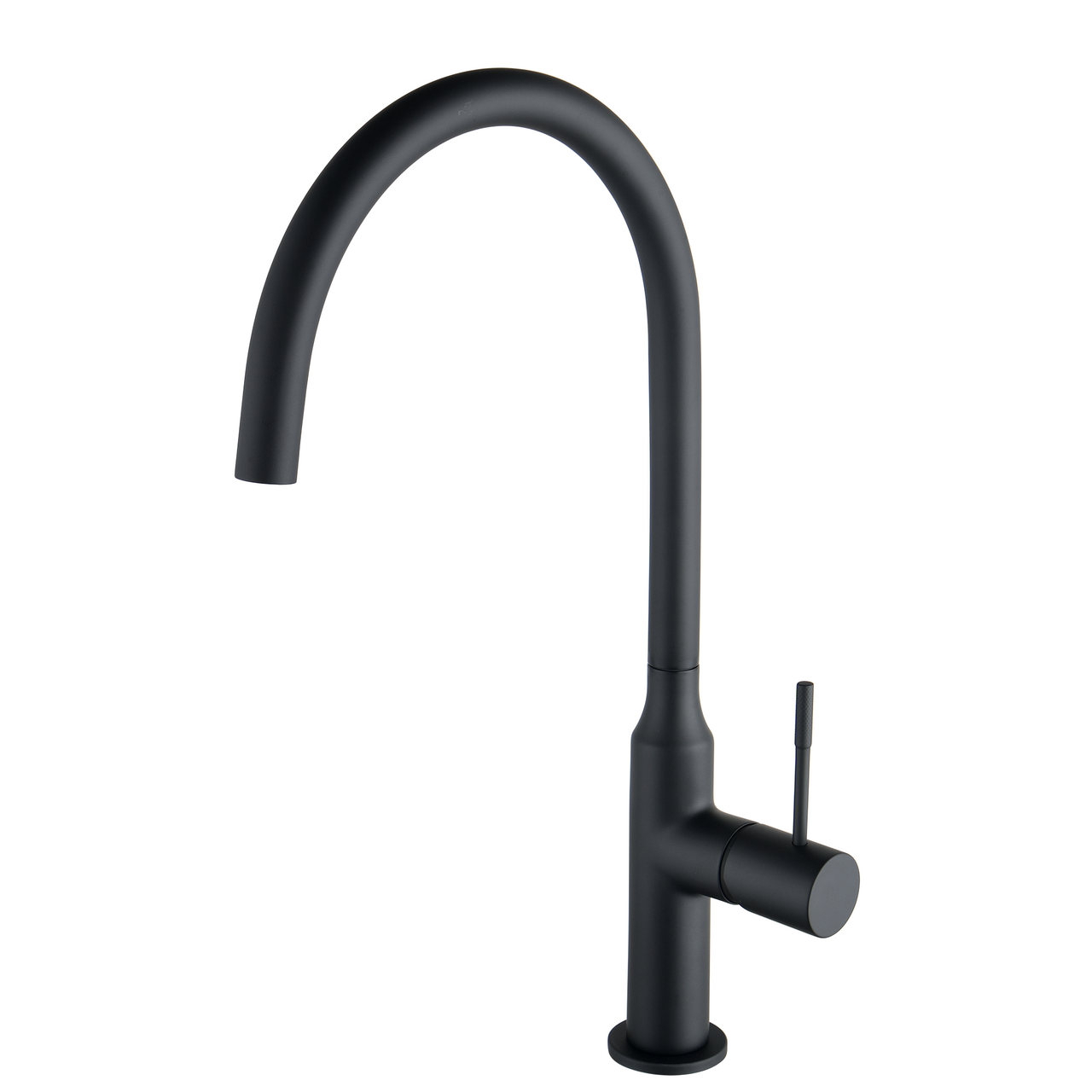 Celeste Ely kjøkkenarmatur har et stilrent design med buede linjer, og en utførelse i matt sort. Den C-formede tuten og 360° svingradius gir god utnyttelse av kjøkkenservanten, og gjør det enkelt å vaske blant annet store panner og kar.