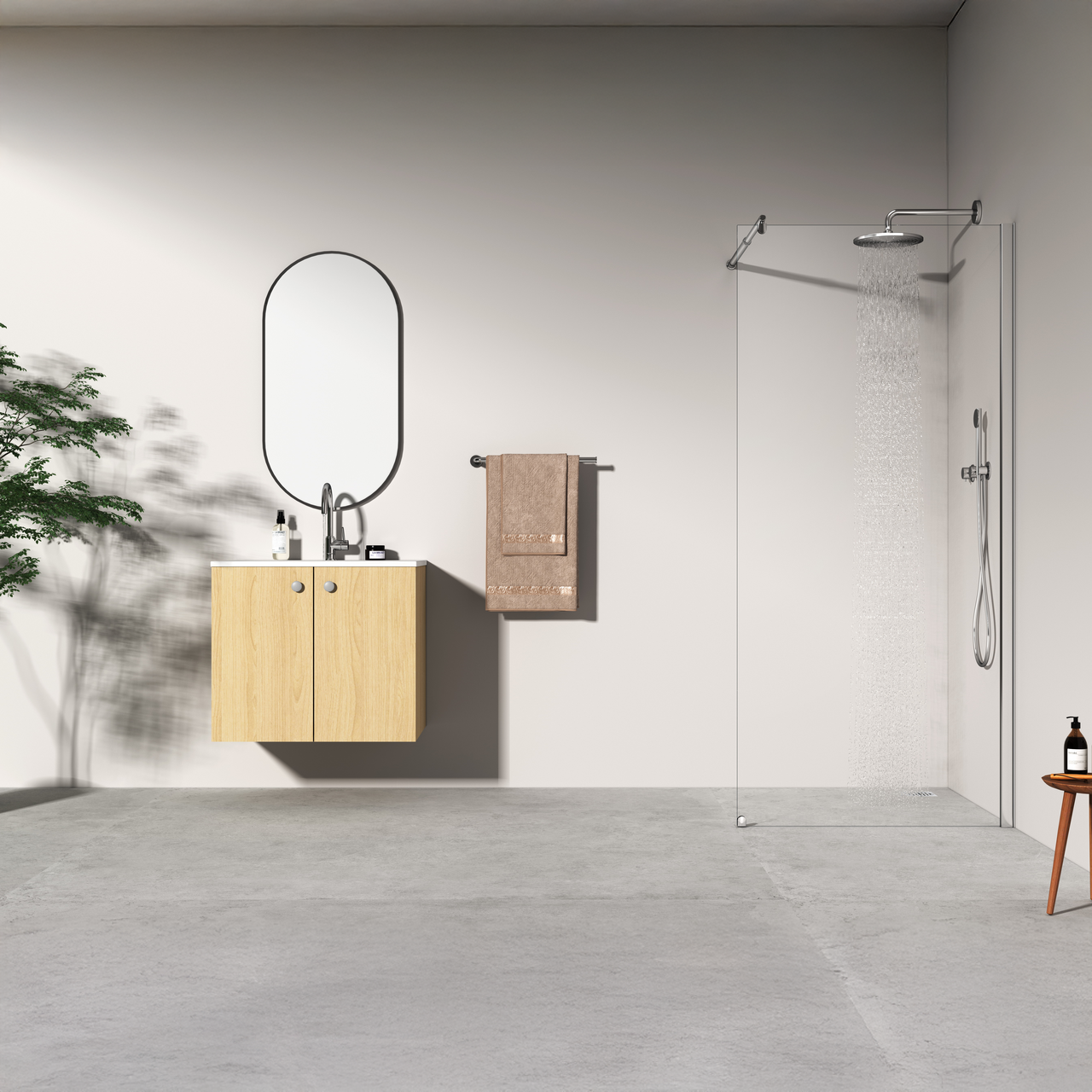 En fast dusjvegg kan være praktisk om du for eksempel har møbler eller annet som hindrer bruken av dusjdører. Med denne dusjveggen kan du selv velge om du ønsker å ha den frittstående eller om du vil kombinere den med en dusjdør for å få et komplett dusjhjørne.