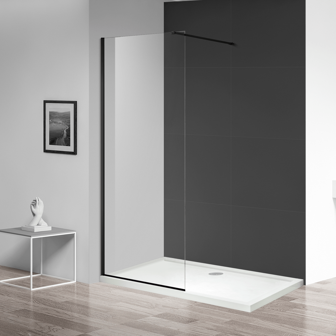 Celeste fast dusjvegg 90x190cm sort venstre 6mm glass m/sikkerhetsfolie