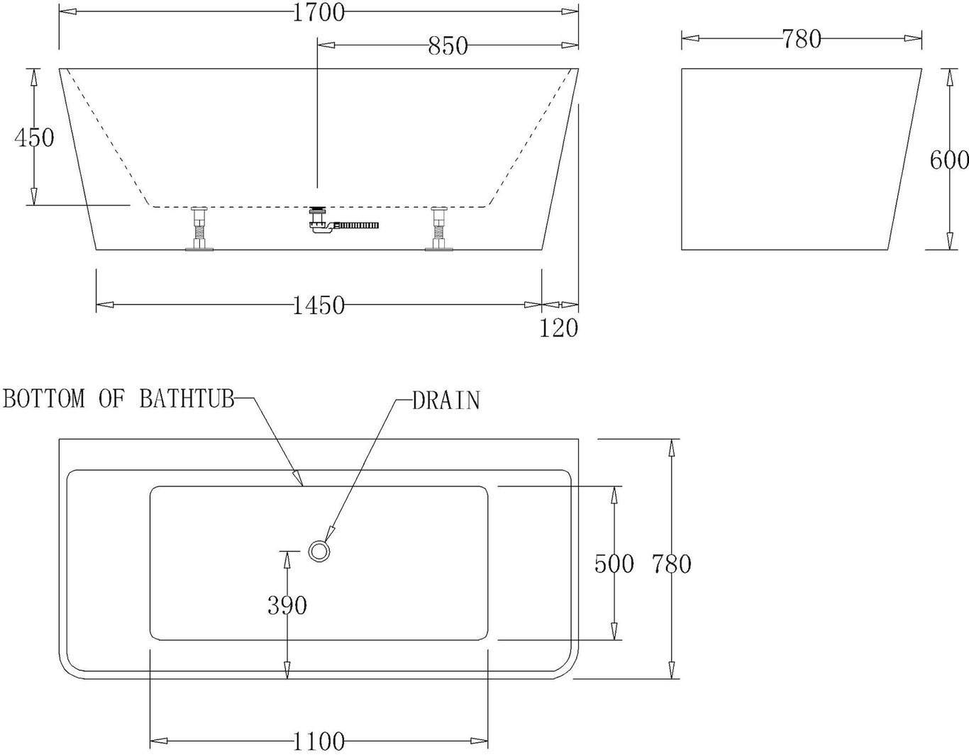 Badekaret er laget i helstøpt akryl, som gjør det mer slitesterkt og hygienisk. Det kommer med justerbare ben, fleksibel avløpsslange og en push-up bunnventil. På den ene langsiden er det en ekstra bred kant hvor du kan montere armaturet. I front finner du en inspeksjonsluke, som gjør det enkelt å komme til for rengjøring av rør og sluk.