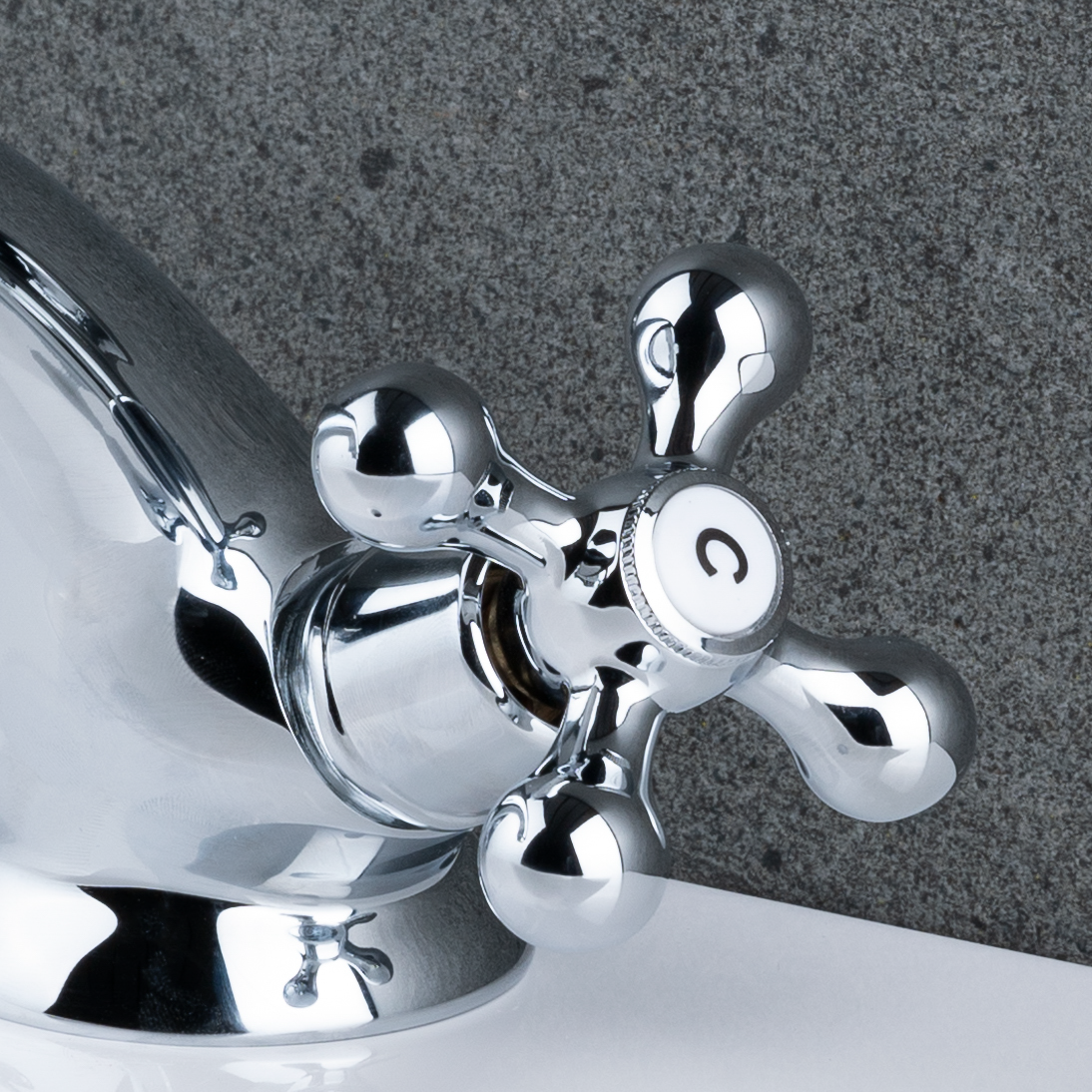 Celeste Hull er et 2-greps servantbatteri med et klassisk design. Hull skiller seg ut med to hendler, og vil passe utmerket dersom du ønsker et landlig- eller klassisk preg på ditt baderom.