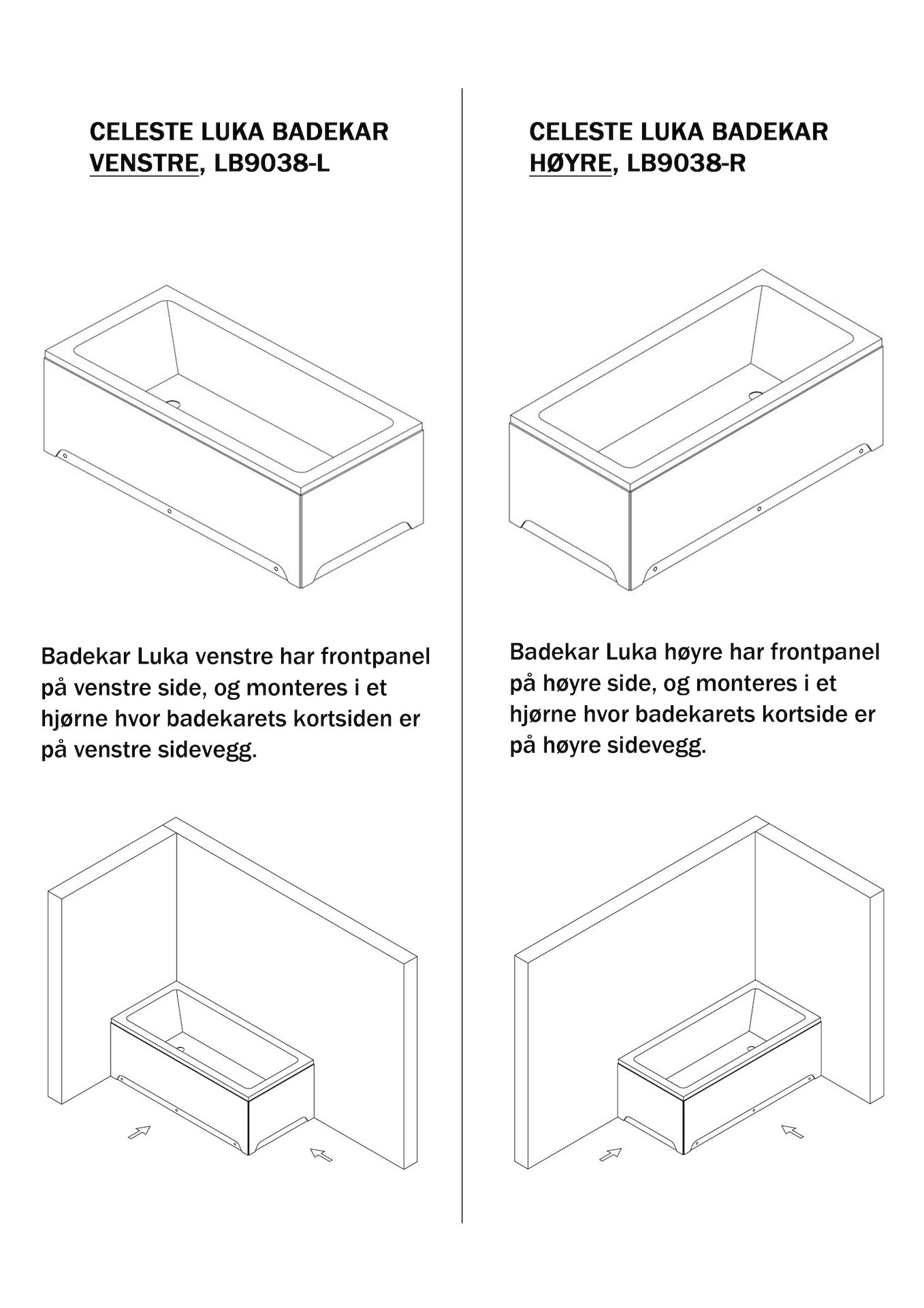 NB! Denne modellen har frontpanel på høyre side, og monteres i et hjørne hvor badekarets kortside er på høyre sidevegg.