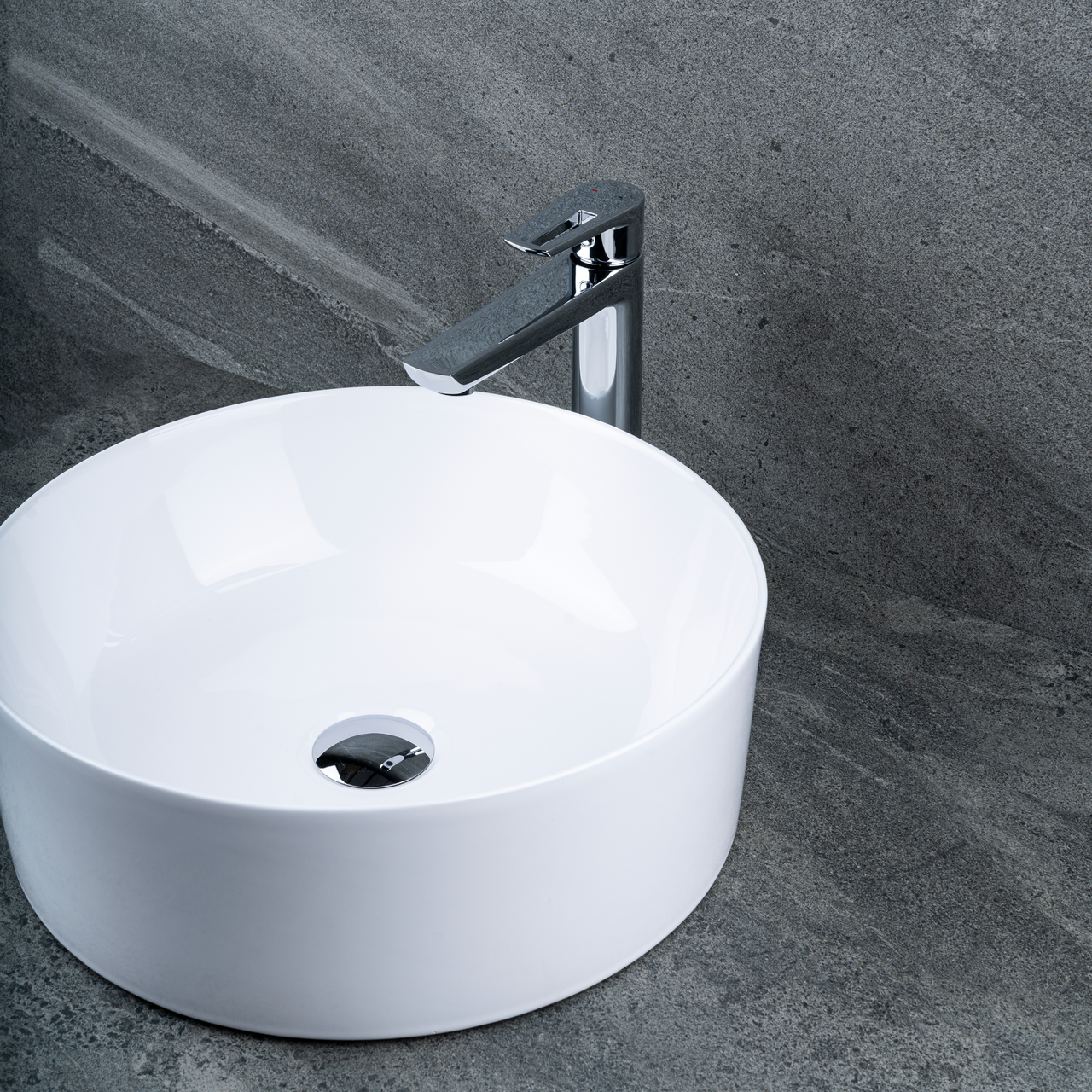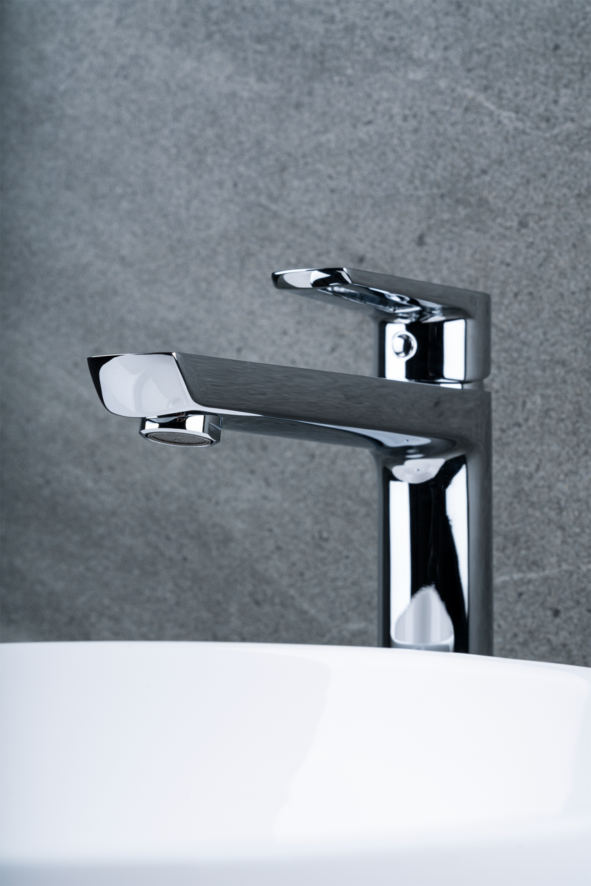 Dette servantbatteriet fra Celeste har et moderne design og rene linjer, i en elegant kromfarge. Sammen med en frittstående servant skaper den en moderne helhet på badet.