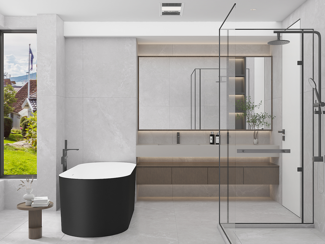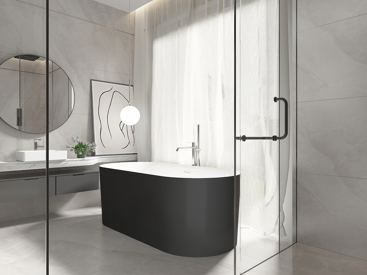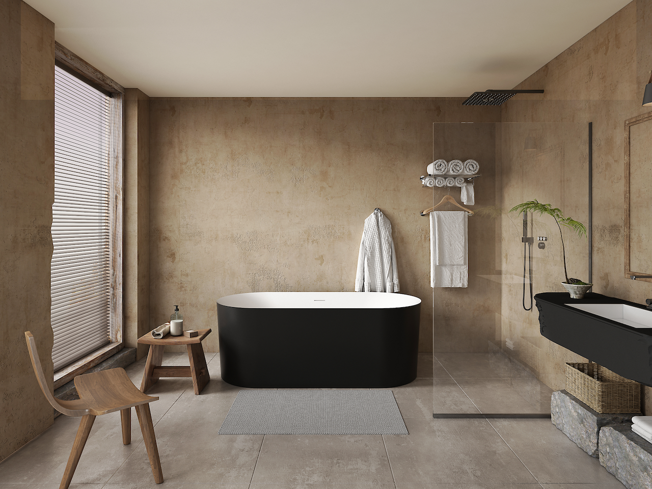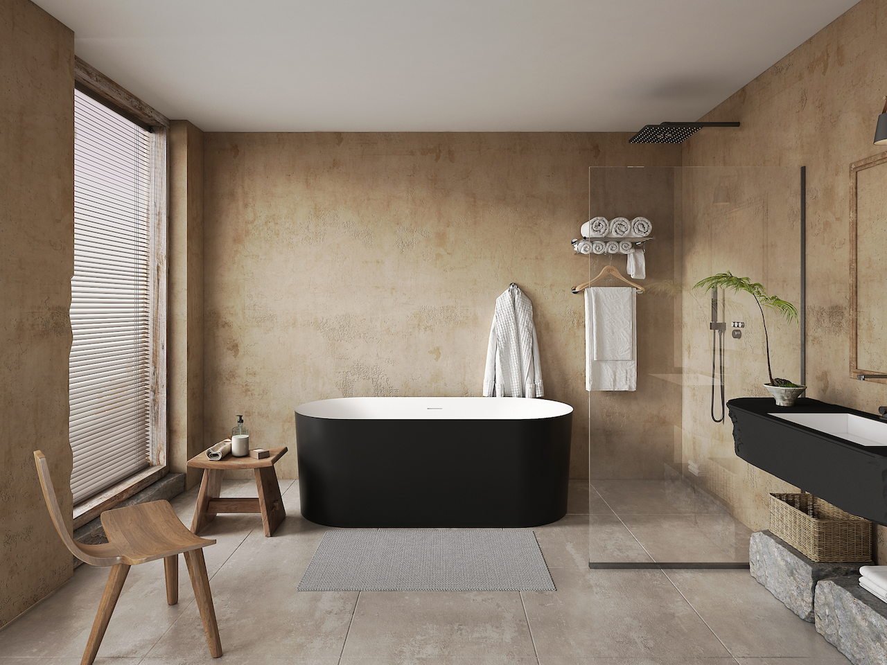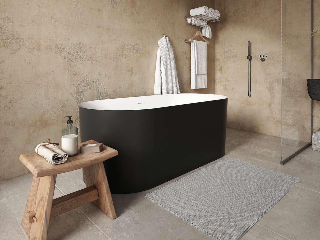 Celeste Messina er et matt sort, frittstående badekar med et stilrent design. Det passer inn i både mørke og lyse baderom.