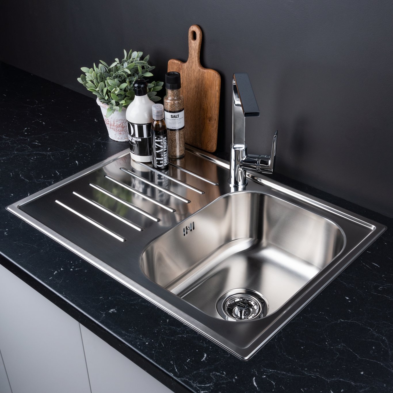 Lekker og minimalistisk kjøkkenvask i stål fra Celeste. Her får du en kjøkkenvask med god plass og med en slitesterk overflate.