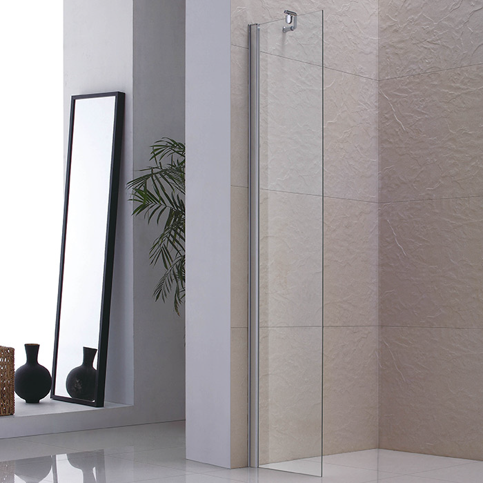 Celeste sidevegg i 40 cm bredde med krom-fargede profiler er laget for å kombineres med Celeste enkel nisjedør. Du kan selv velge hvilken side veggen monteres på.