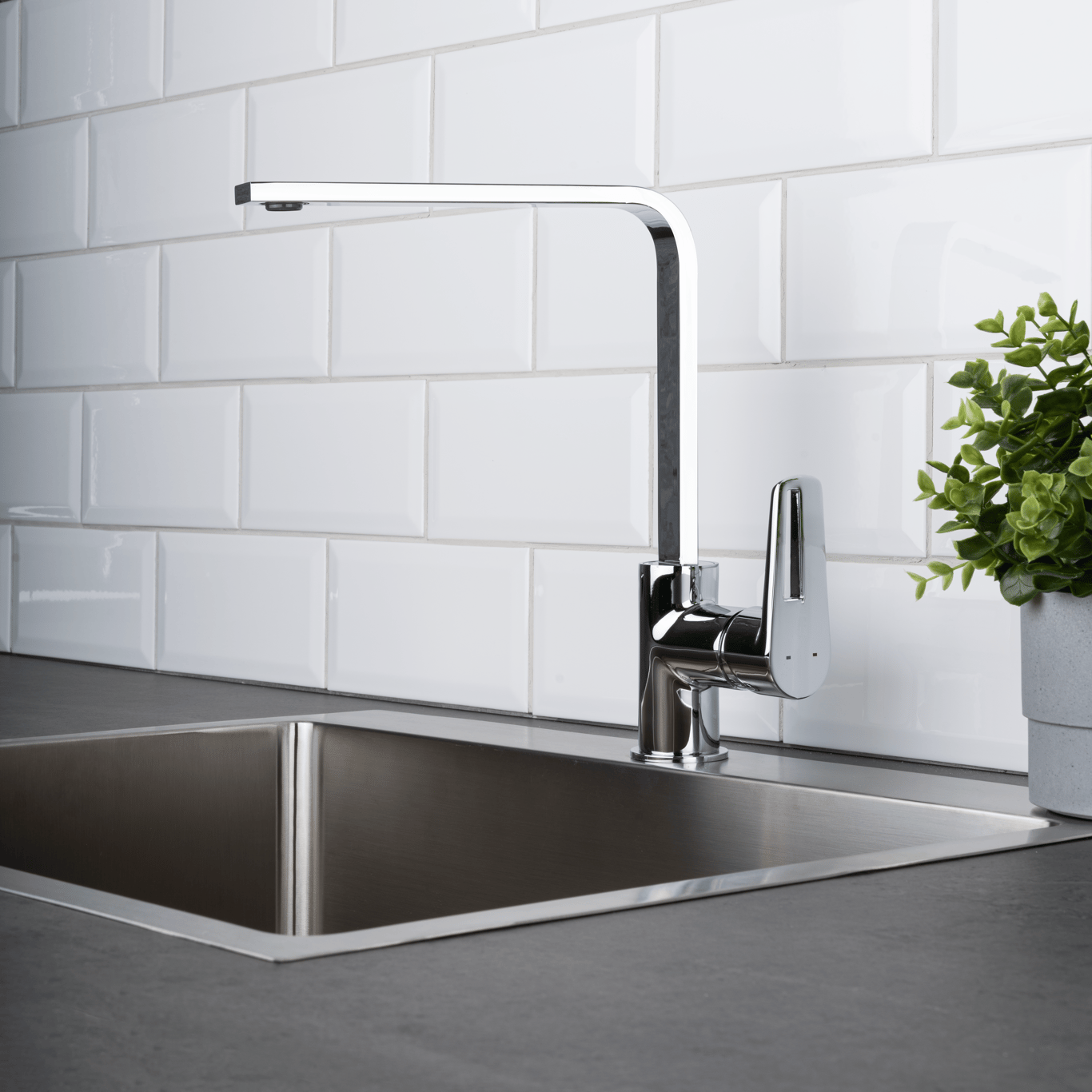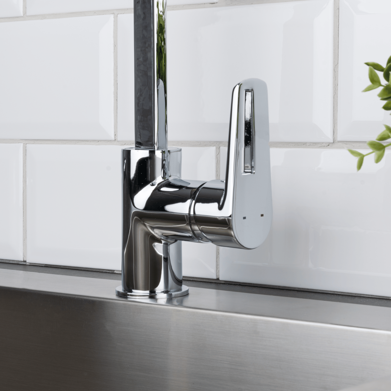 Stoke fra Celeste er en moderne kjøkkenarmatur med et minimalistisk design, i krom.