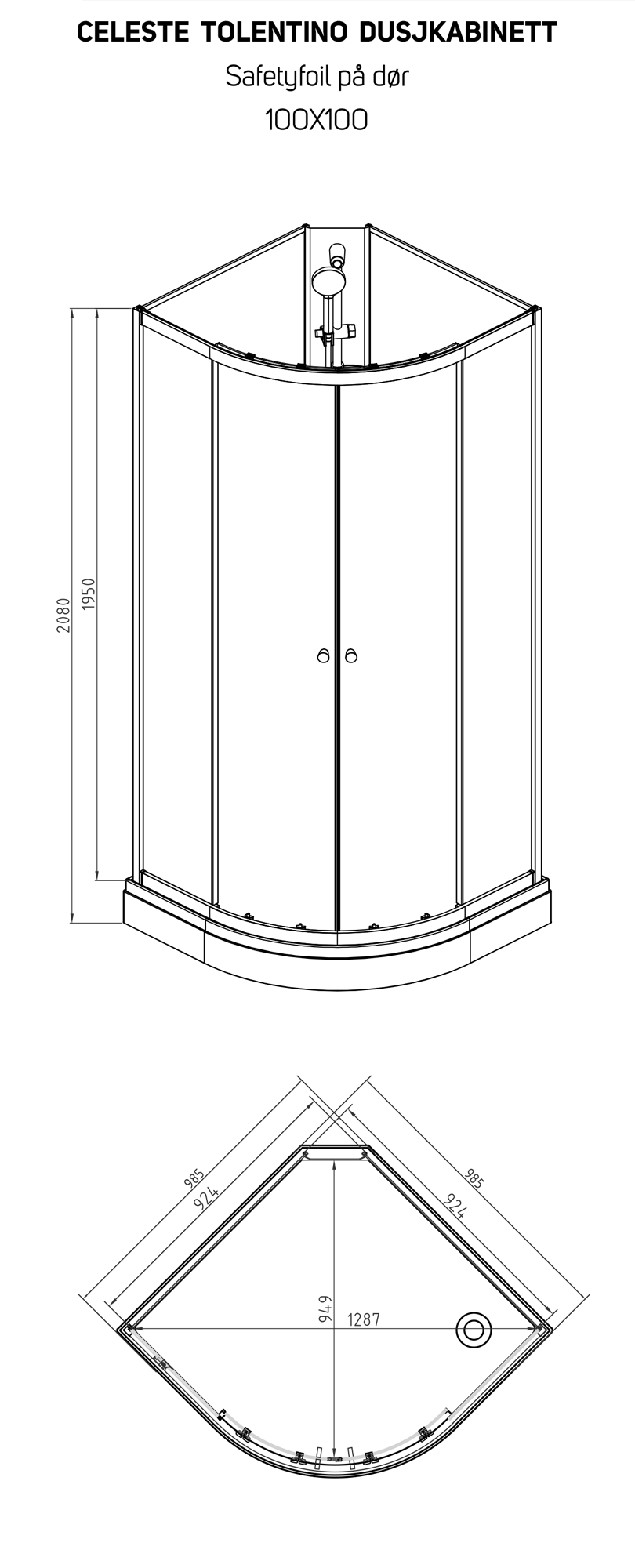 CELESTE TOLENTINO BUET DUSJKABINETT 100X100X210 CM M/SIKKERHETSFOLIE, HVIT