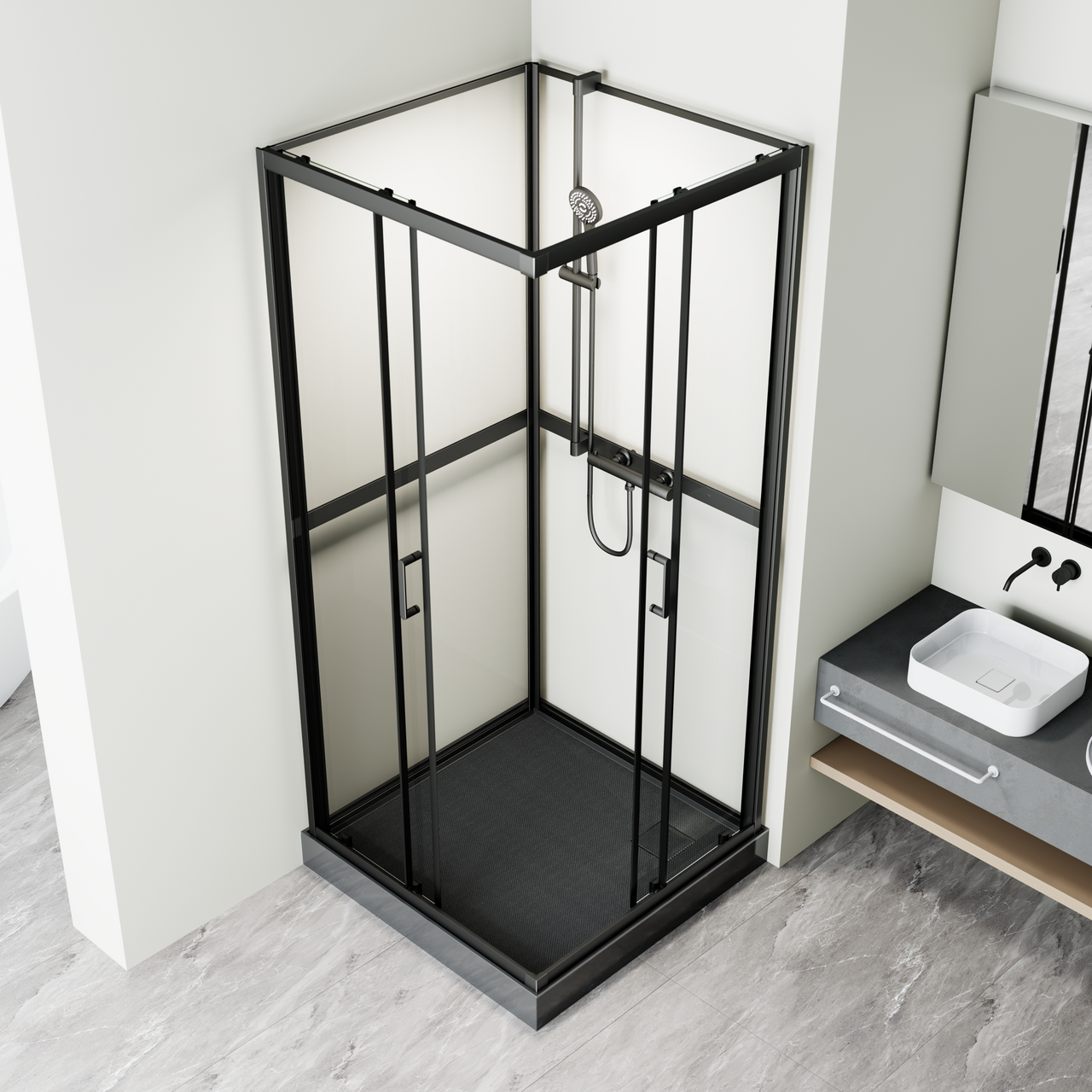 Celeste trento rett dusjkabinett 80x80x205 cm m/sikkerhetsolie sort